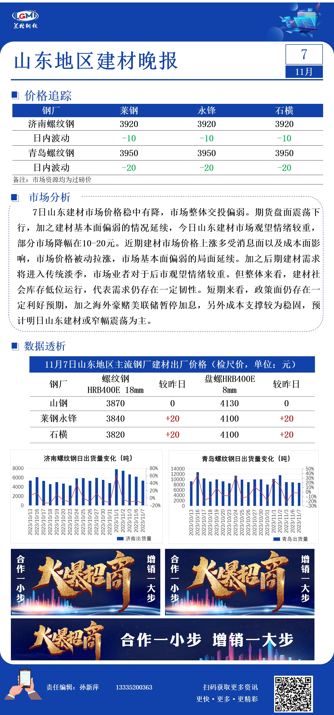- 11月7日唐山东华建筑钢材出厂价格下调10元2023/11/7