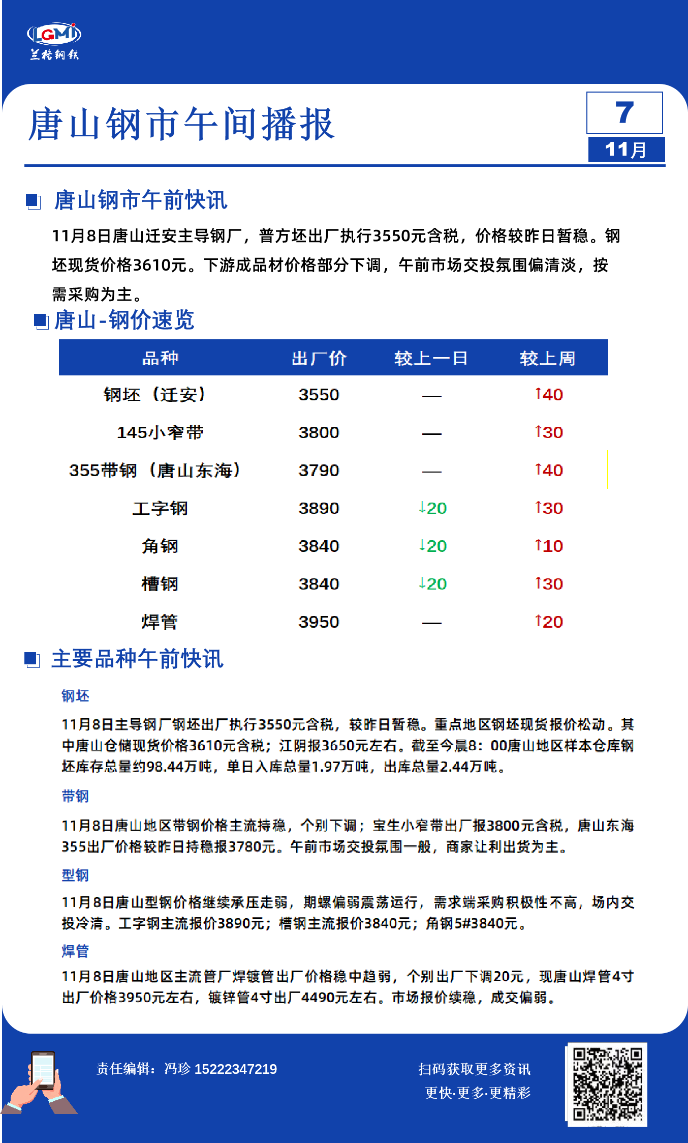 - 11月8日兰格唐山钢市午间播报2023/11/8