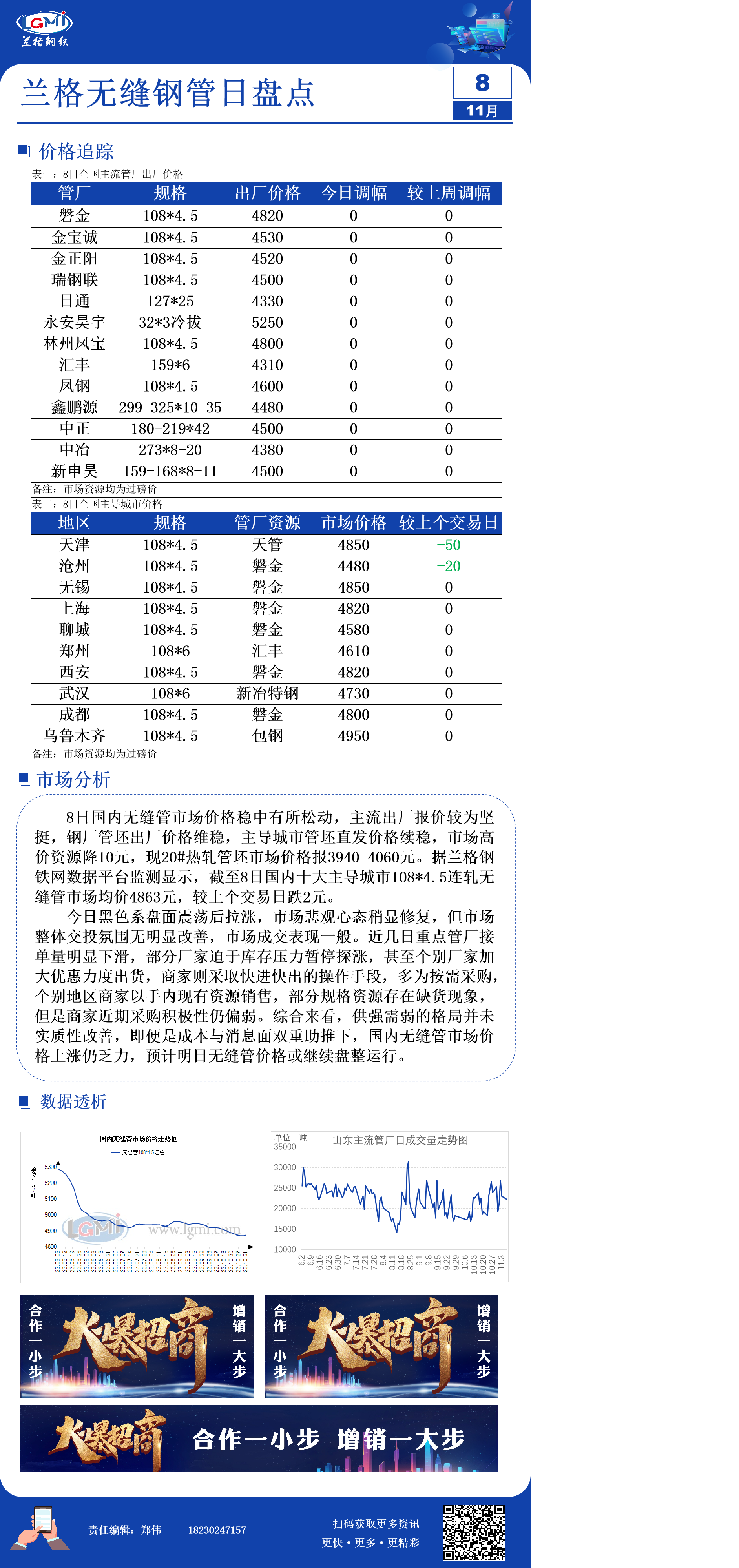 - 11月8日全国无缝管出厂价格汇总2023/11/8