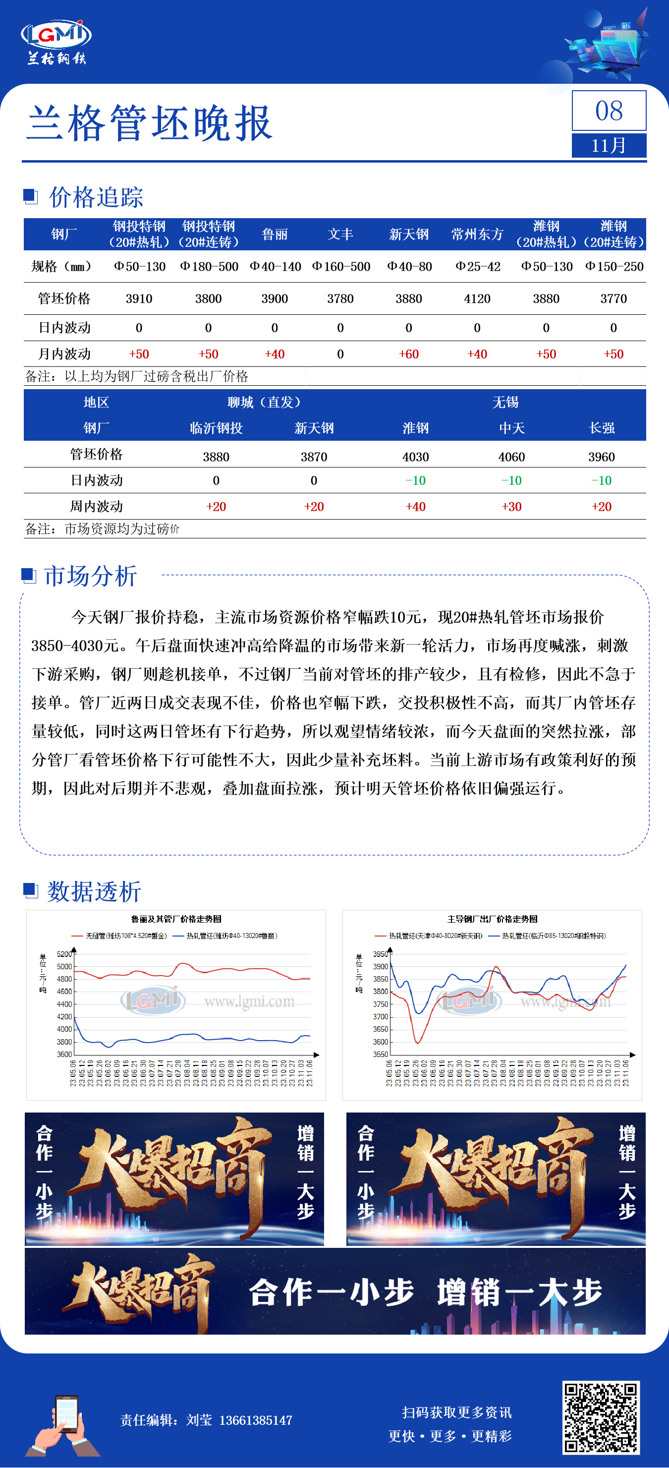 兰格管坯日盘点:盘面冲高超预期 管坯再次走强