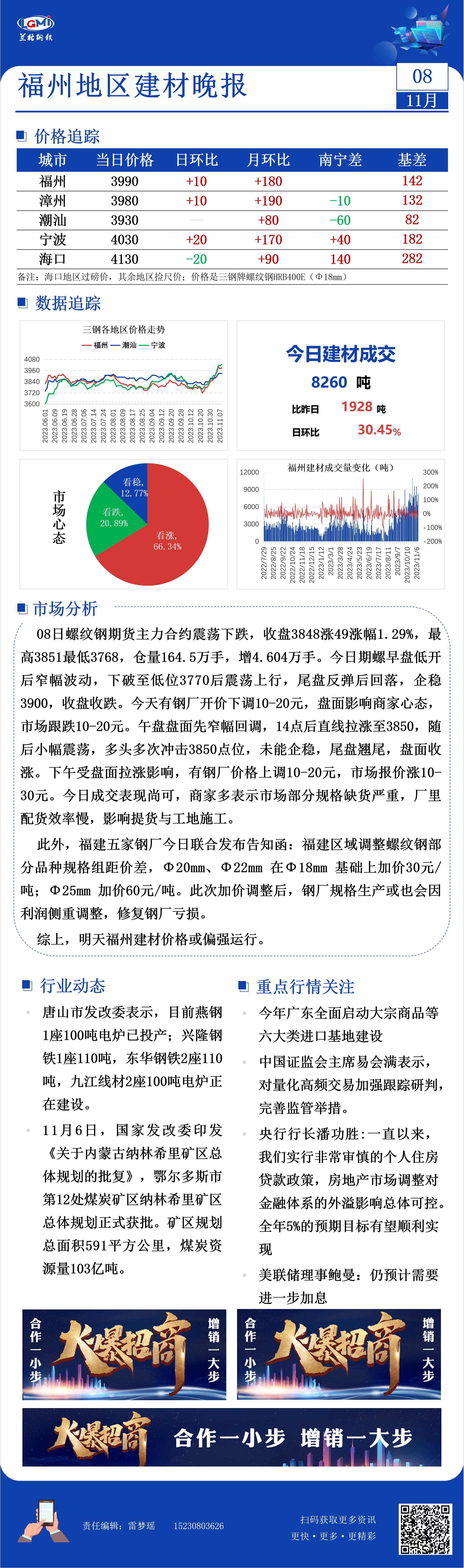 - 福州建材价格小幅上涨 钢厂调整部分规格组距价差2023/11/8