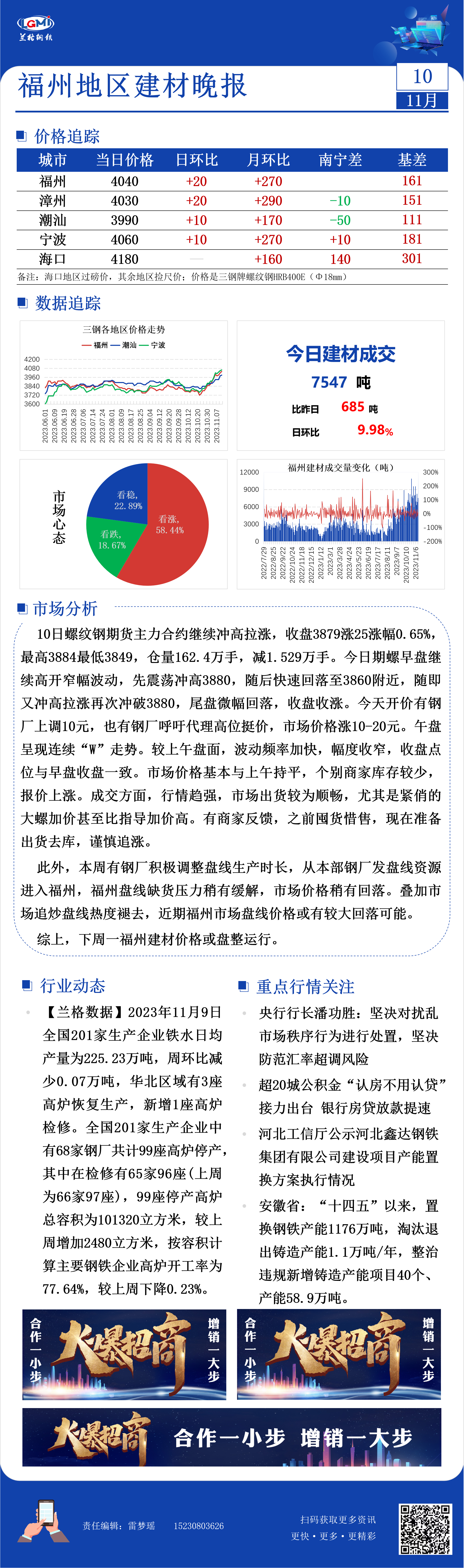 - 快讯:10日漳州建材二次价格上涨10元2023/11/10