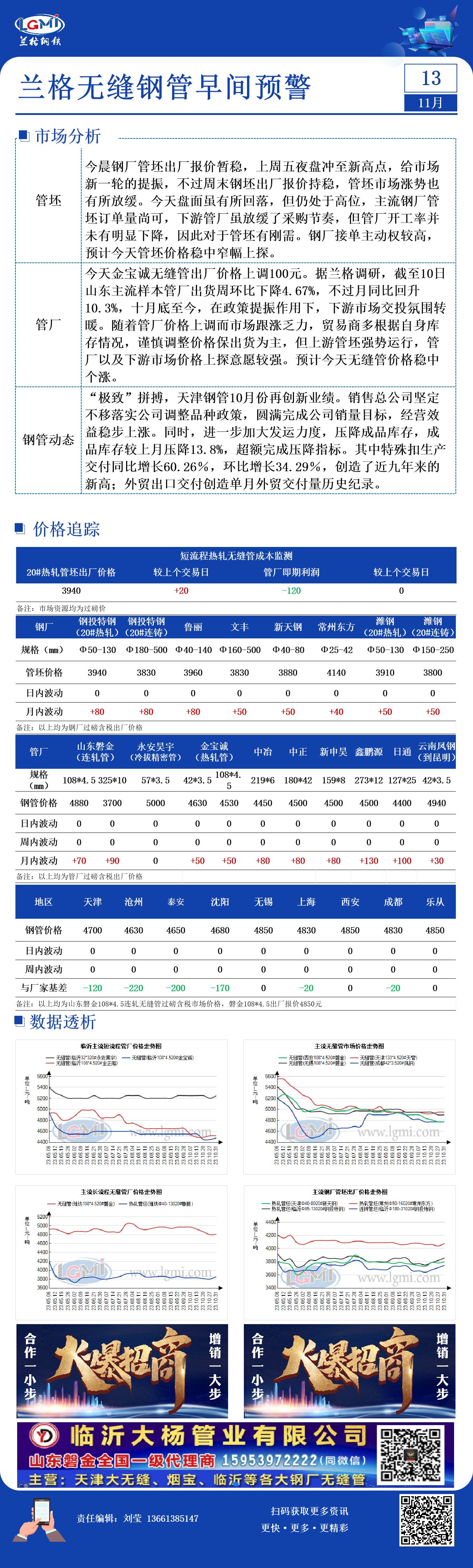 11月13日兰格无缝管早间预警