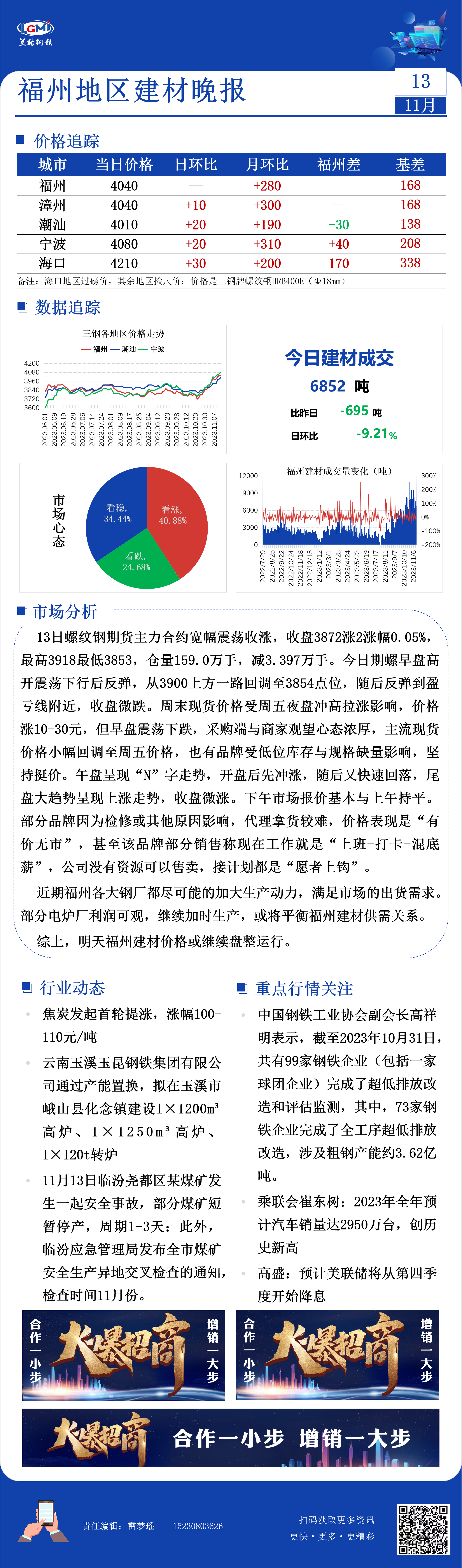 发表日期:2023/11/13 17:12:14 雷梦瑶 兰格钢铁网