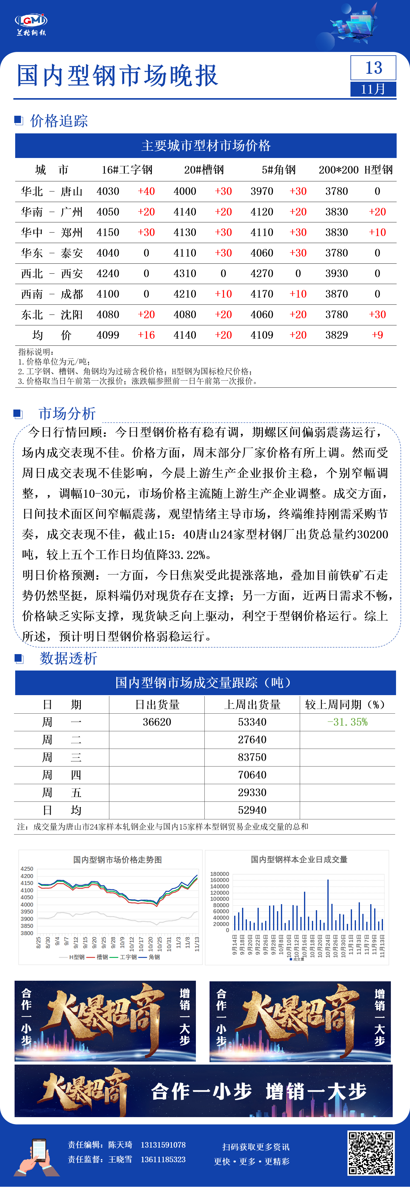 国内型钢价格周末有所上涨今日报价有稳有调 成交不畅