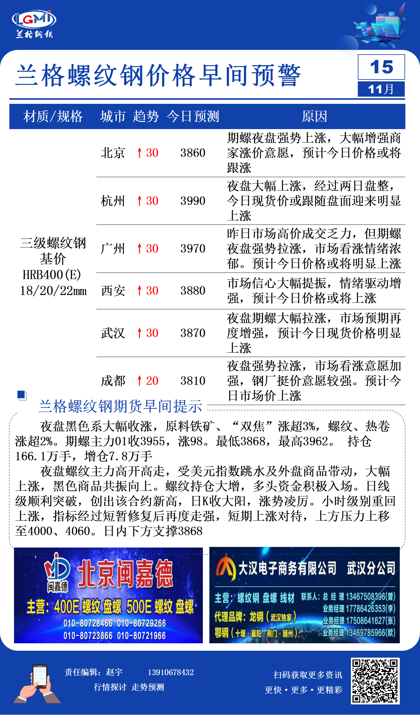11月15日兰格螺纹钢价格早间预警
