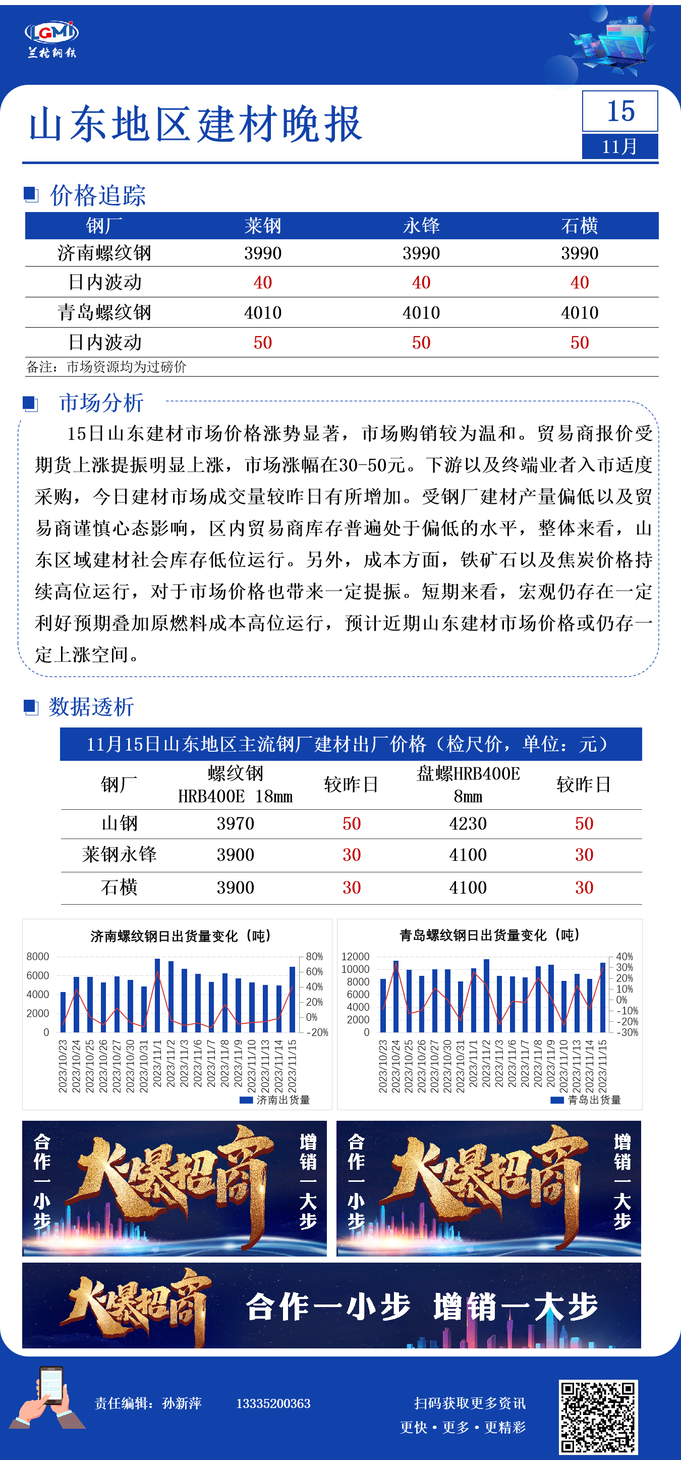 - 11月16日美锦建筑钢材出厂价格平稳2023/11/16