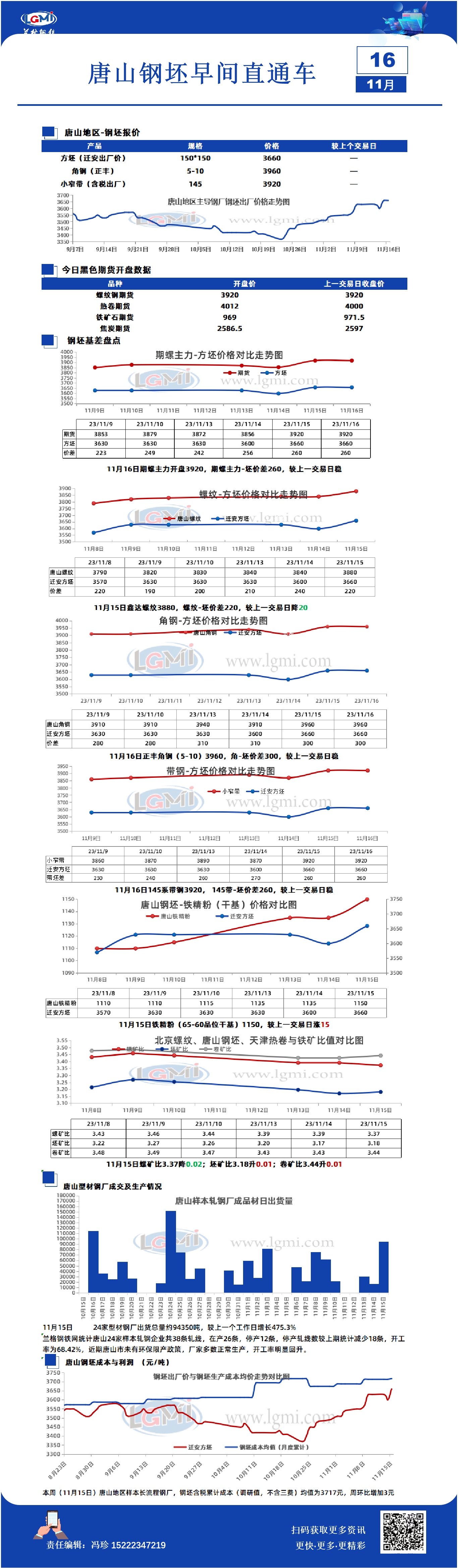 - 11月16日唐山钢坯早间直通车2023/11/16