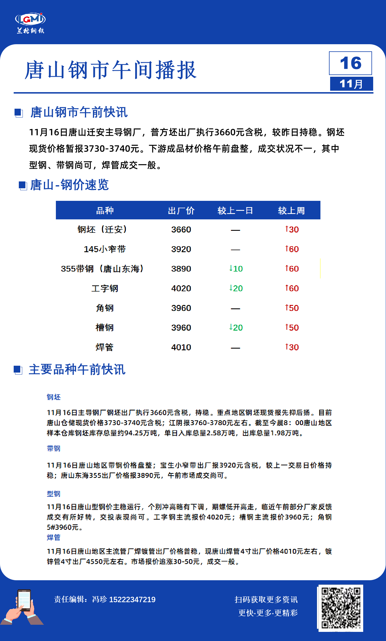 - 11月16日兰格唐山钢市午间播报2023/11/16