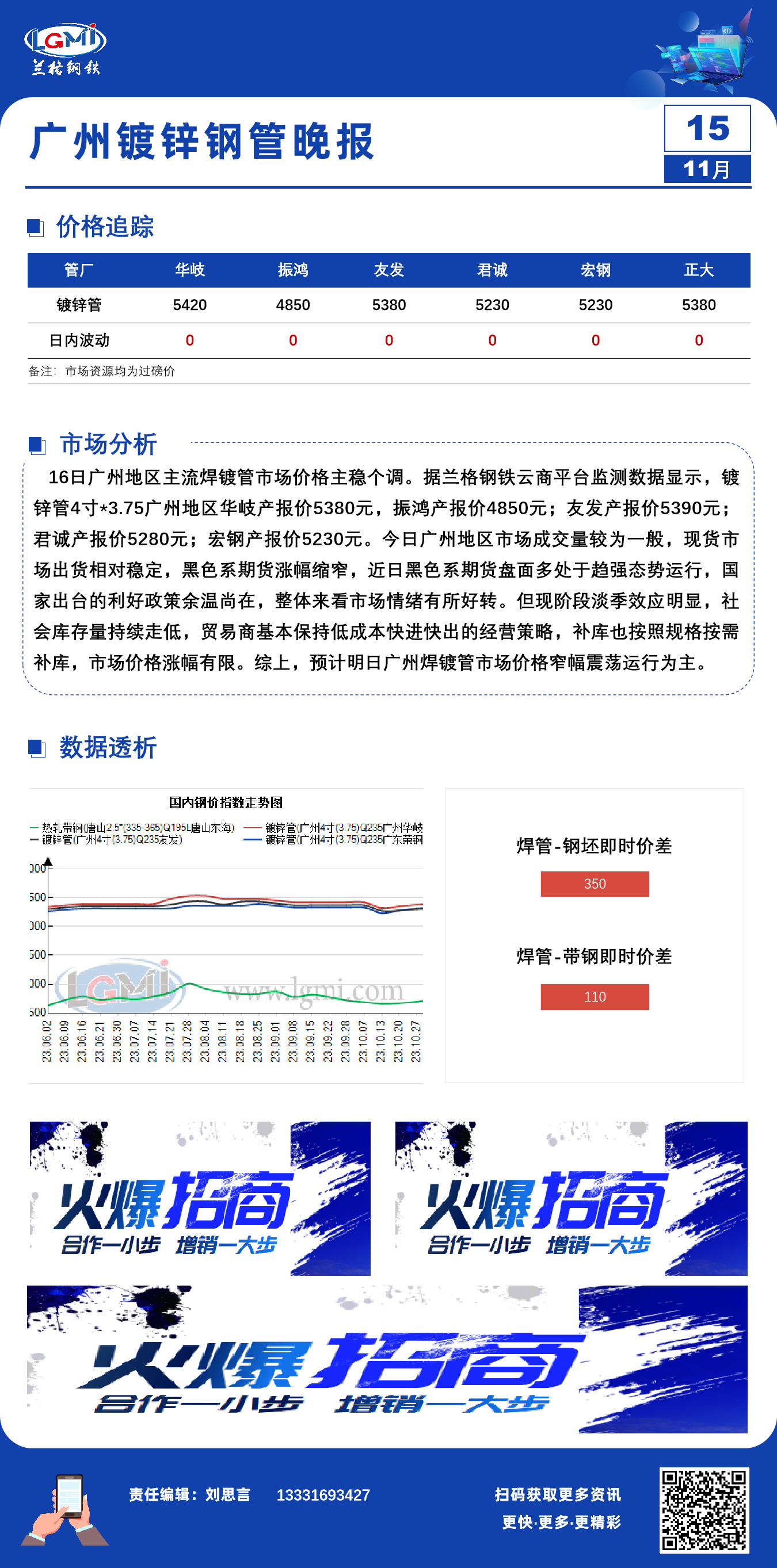 - 11月16日兰格津唐邯焊管、镀锌管早间速递2023/11/16