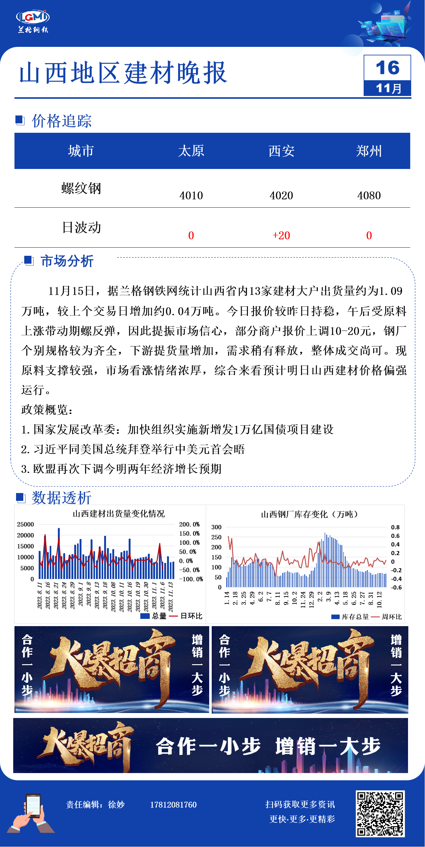 - 山西建材价格平稳 成交稍有放量2023/11/16