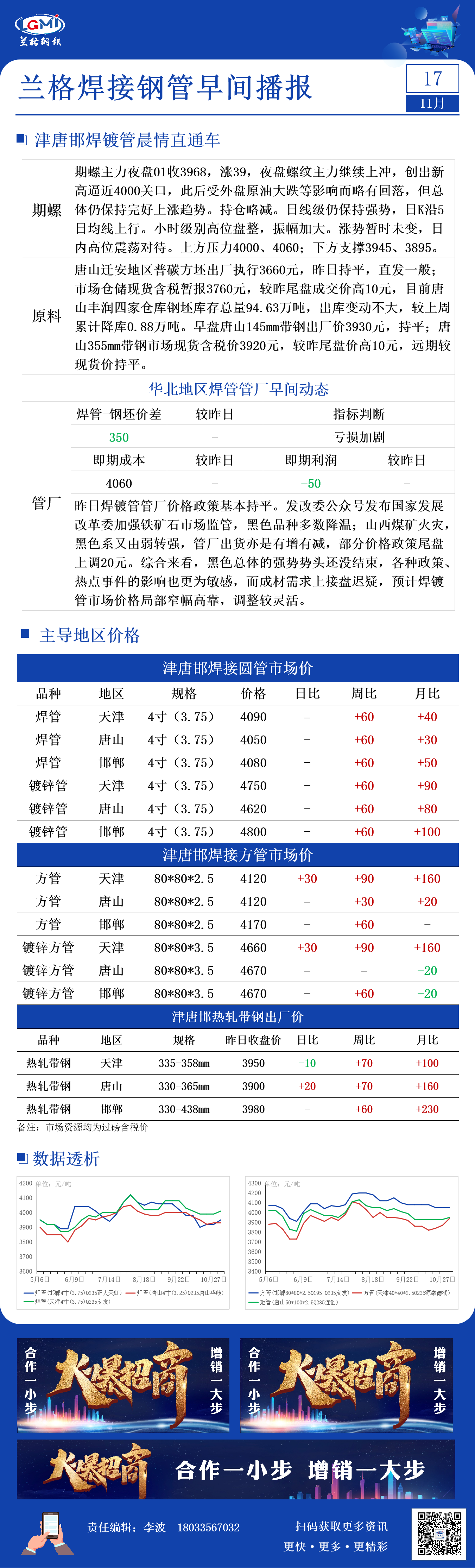 11月17日兰格津唐邯焊管、镀锌管早间速递