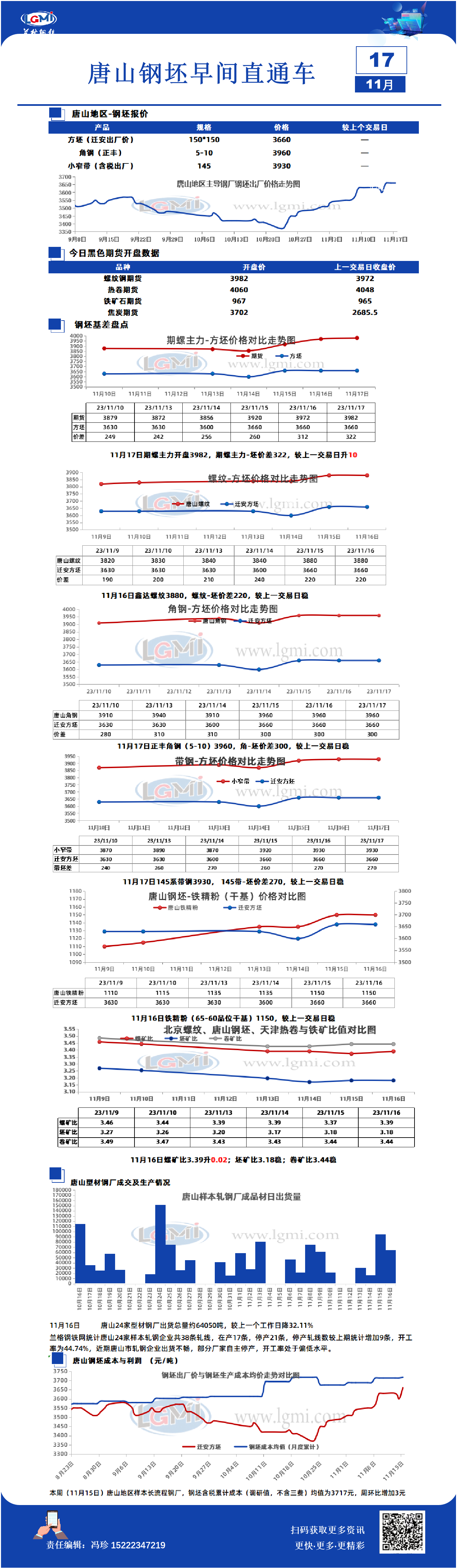 - 11月17日唐山钢坯早间直通车2023/11/17