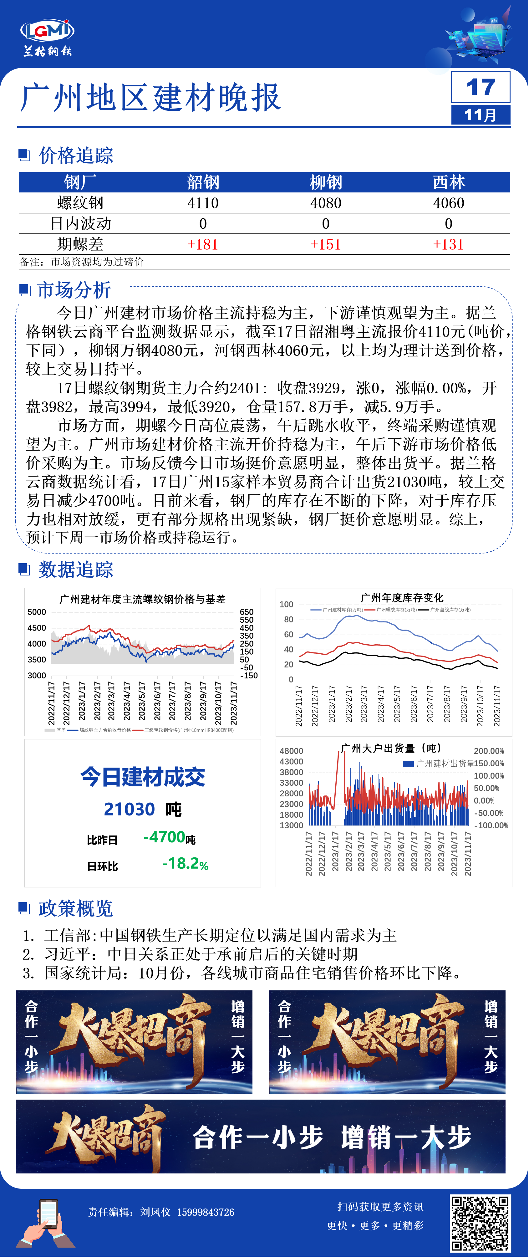 - 广州建材价格持稳 市场成交偏弱2023/11/17