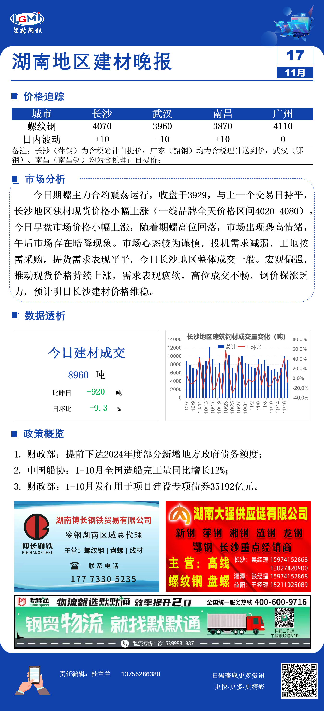 - 长沙建筑钢材库存统计(11.17)2023/11/17