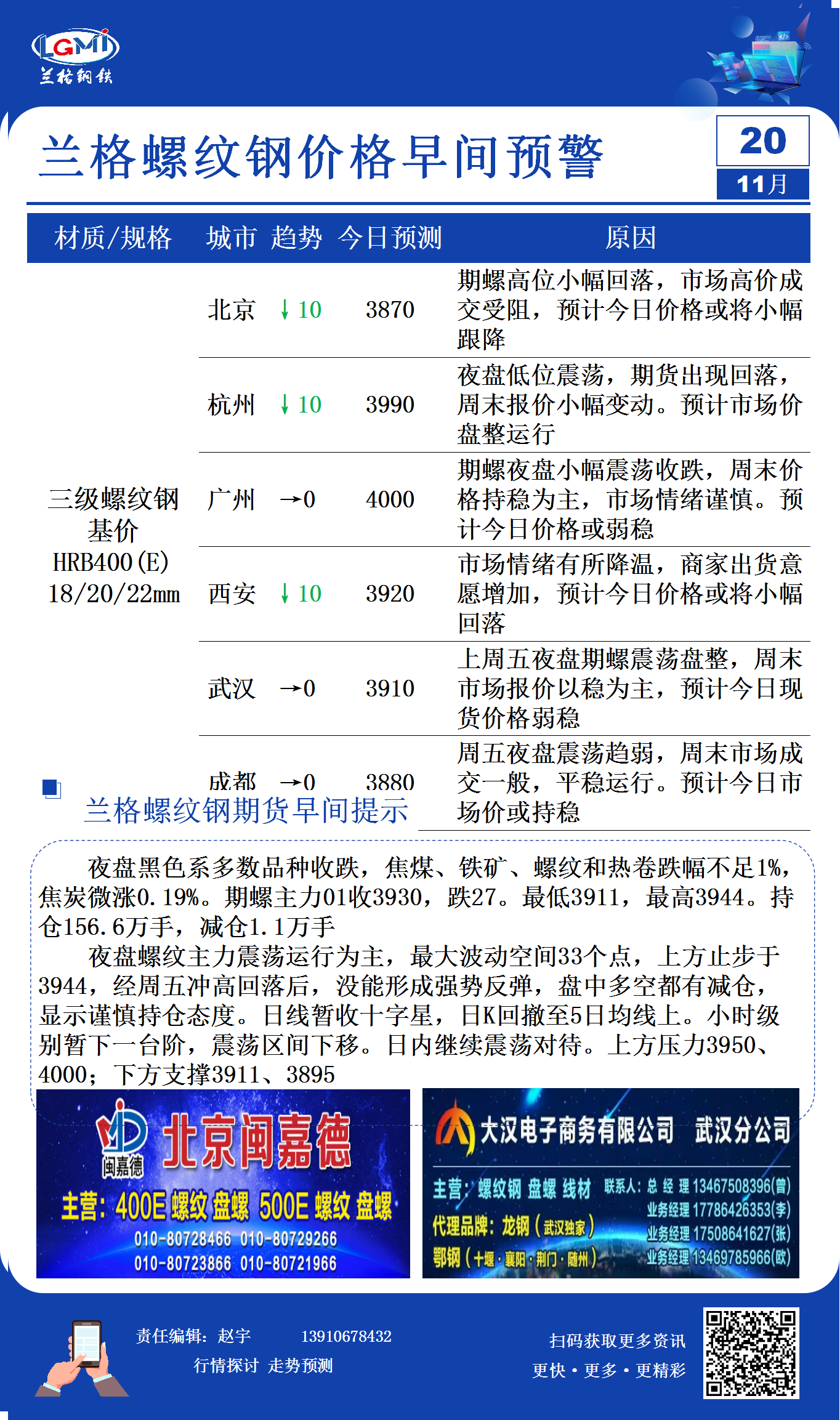 11月20日兰格螺纹钢价格早间预警