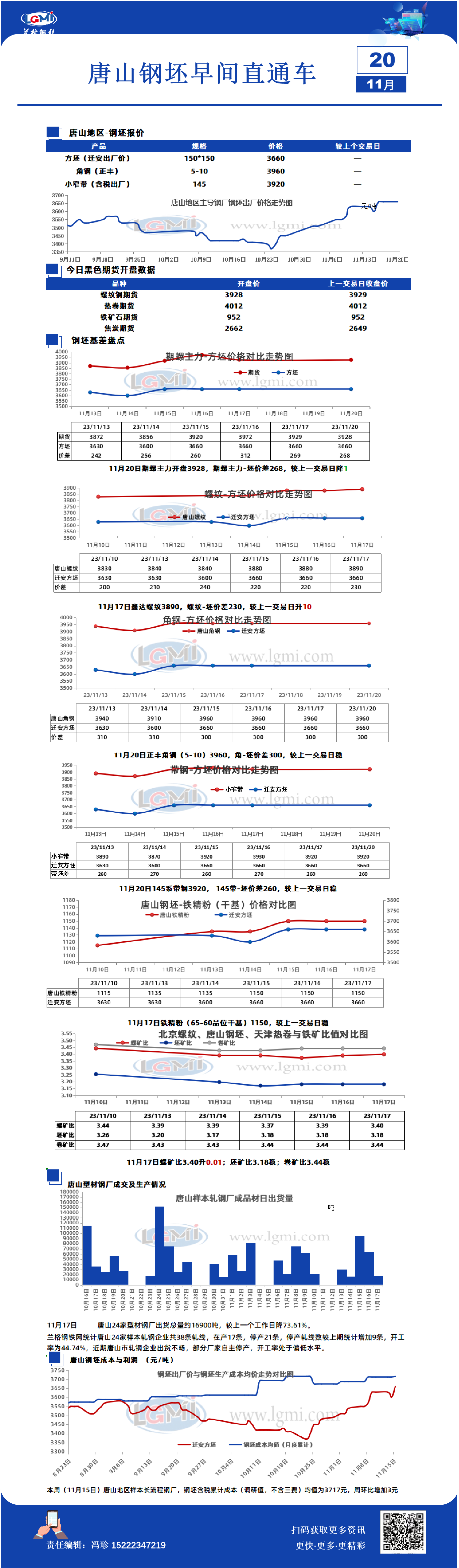 - 11月20日唐山钢坯早间直通车2023/11/20