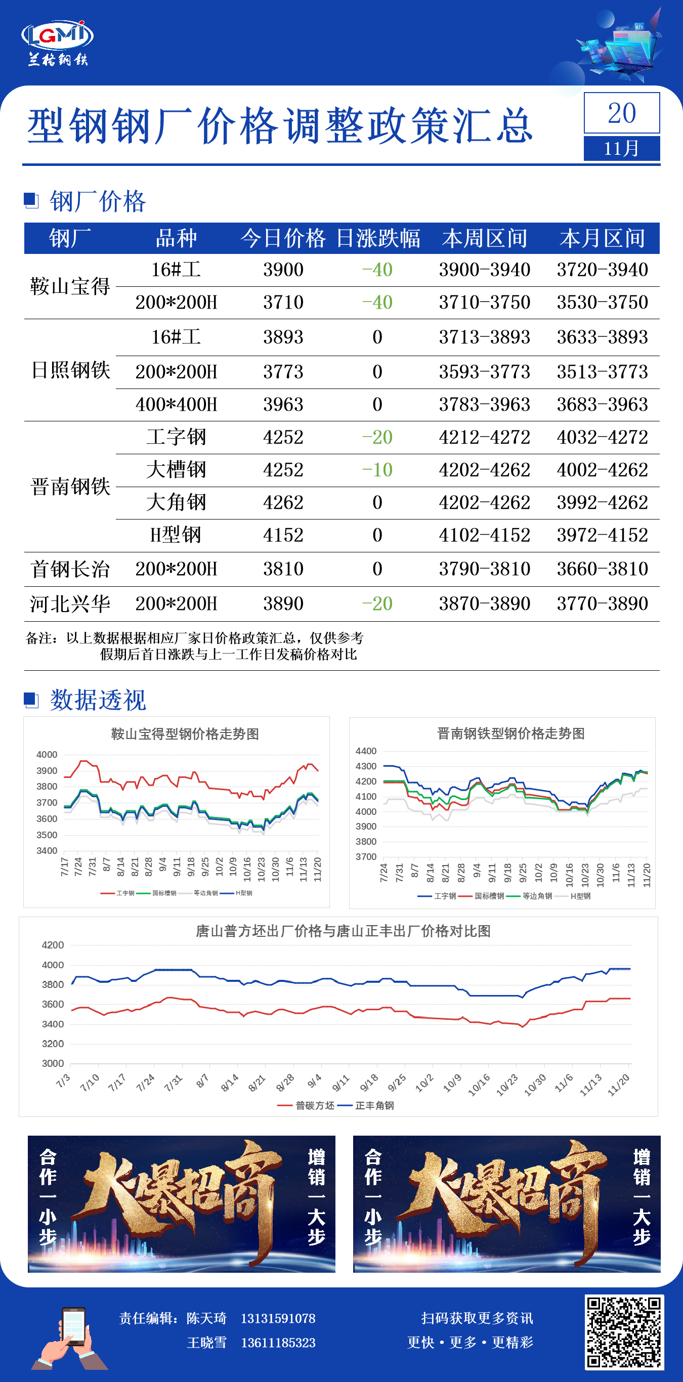 11月20日型钢钢厂价格调整政策汇总