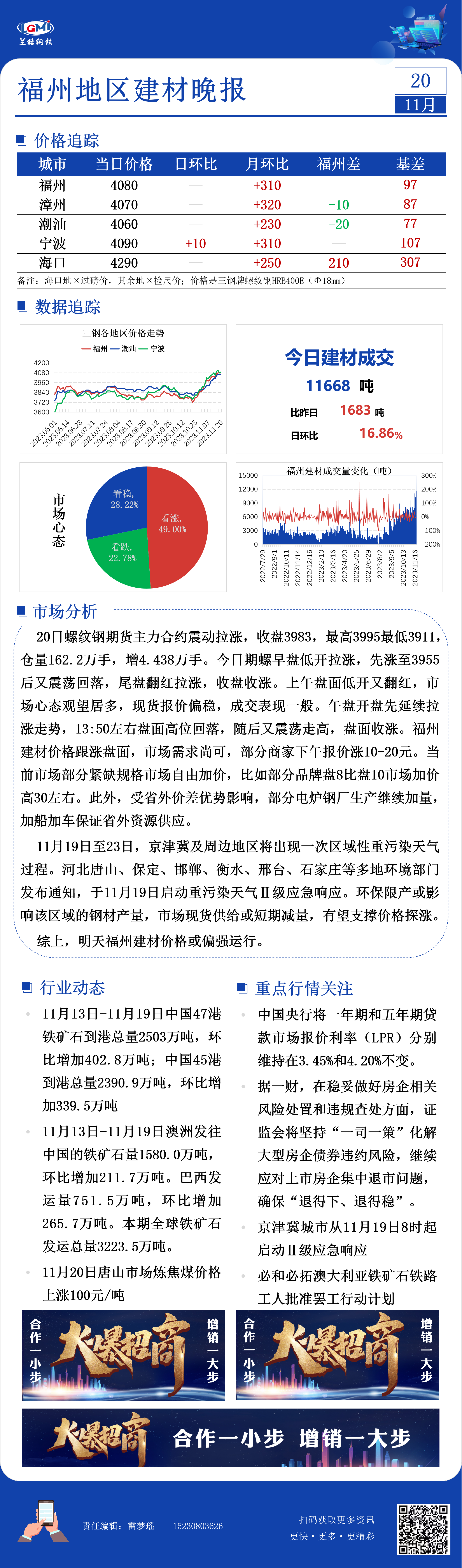 - 兰州建材持稳运行 成交略有增量2023/11/20