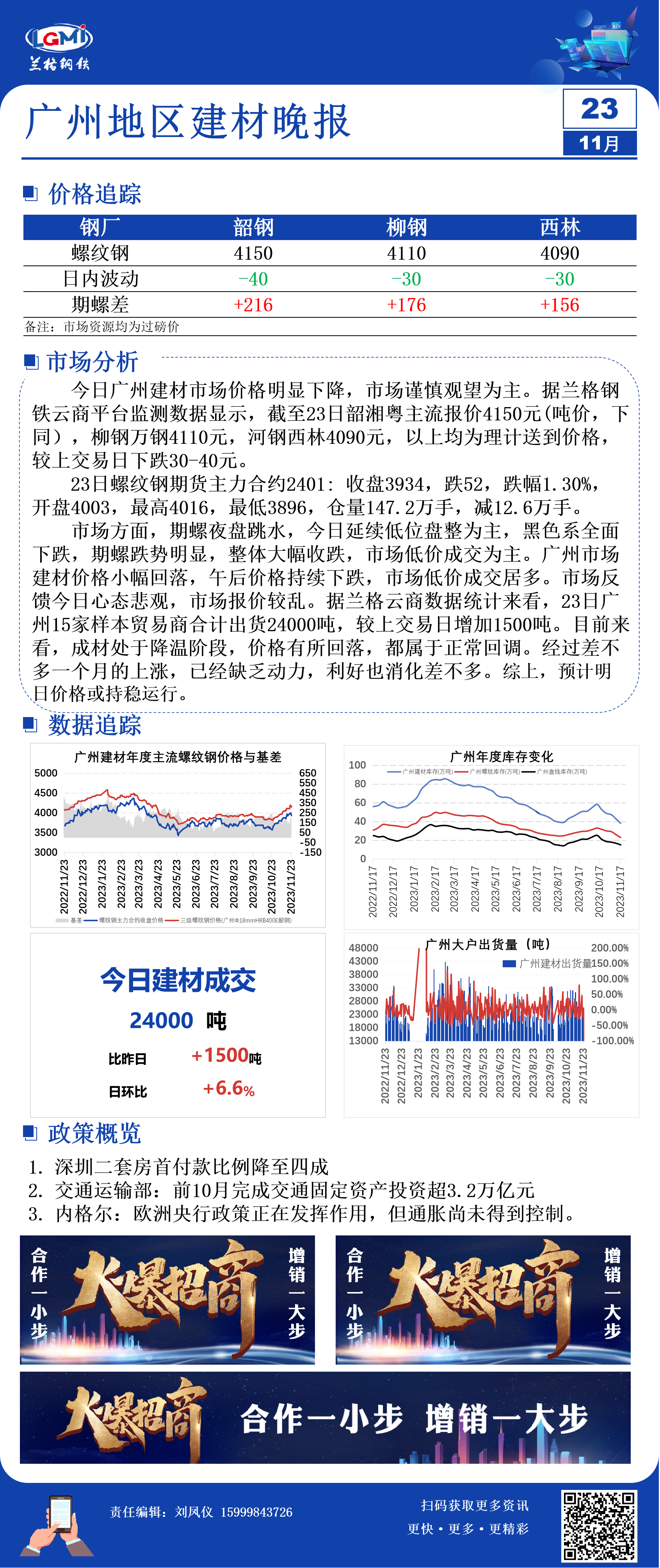 - 广州建材价格明显下跌 市场成交稍好2023/11/23