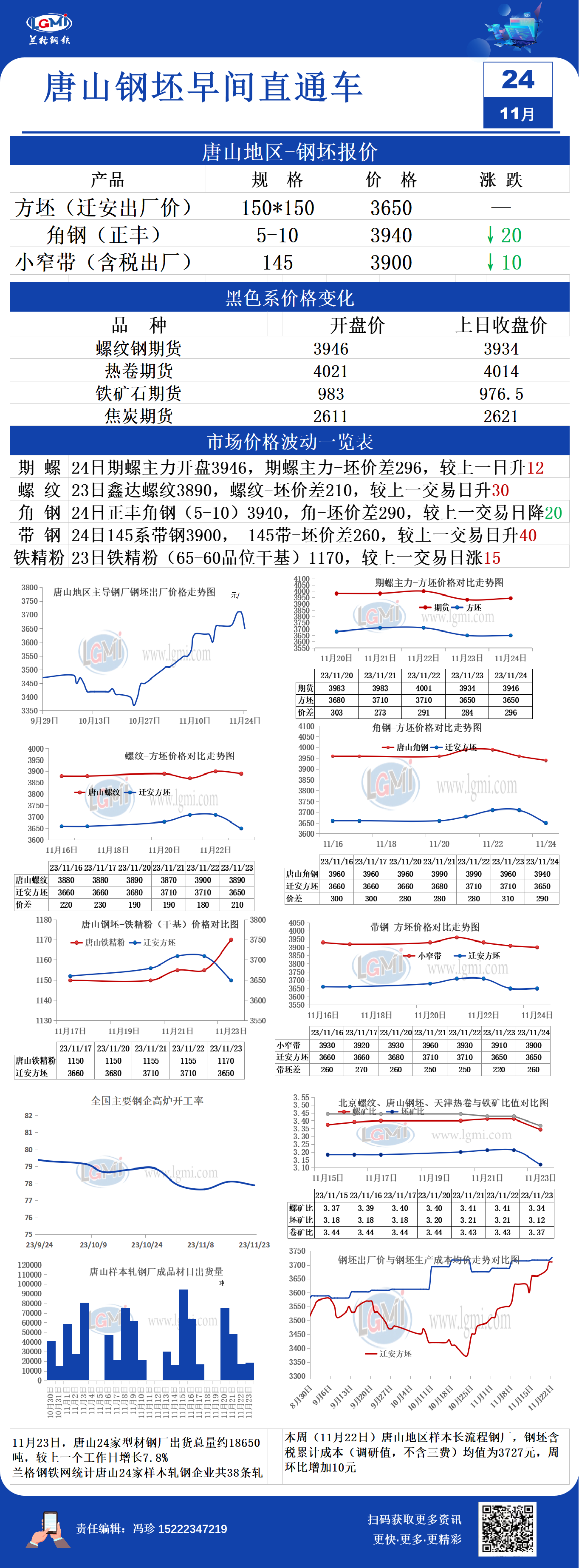 - 11月24日唐山钢坯早间直通车2023/11/24