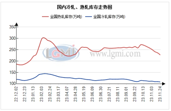 由于需求端的差异,冷轧和热轧市场出现分化,库存一降一增。