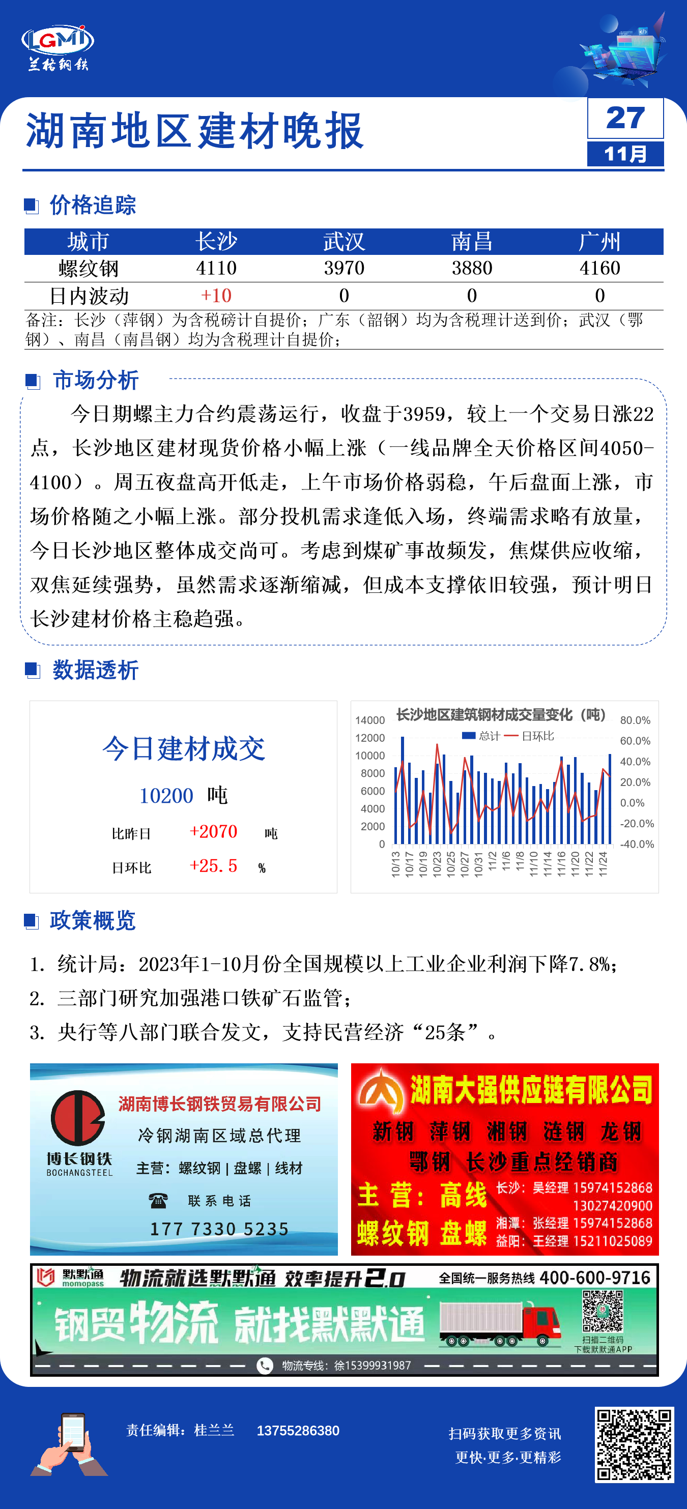 发表日期:2023/11/27 17:08:57 兰格钢铁-桂兰兰 兰格钢铁网