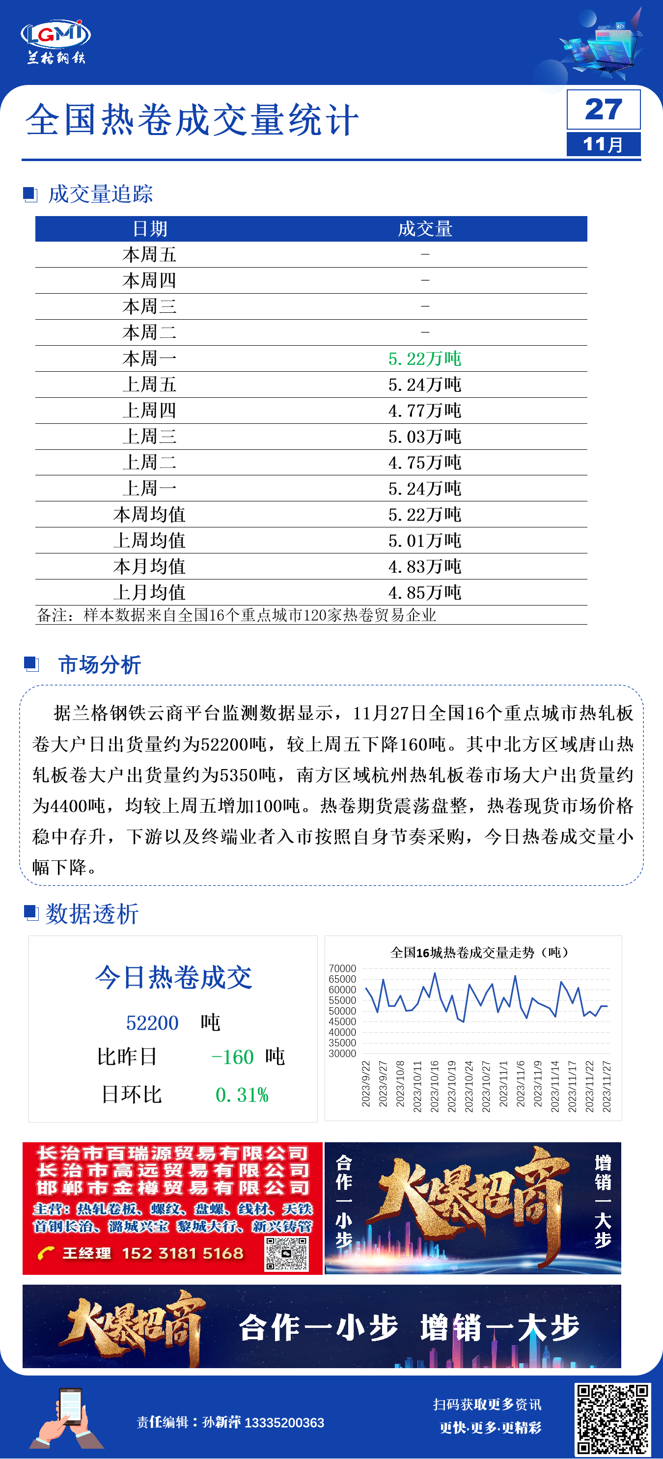 - 11月27日全国16个城市热轧板卷大户日成交量2023/11/27