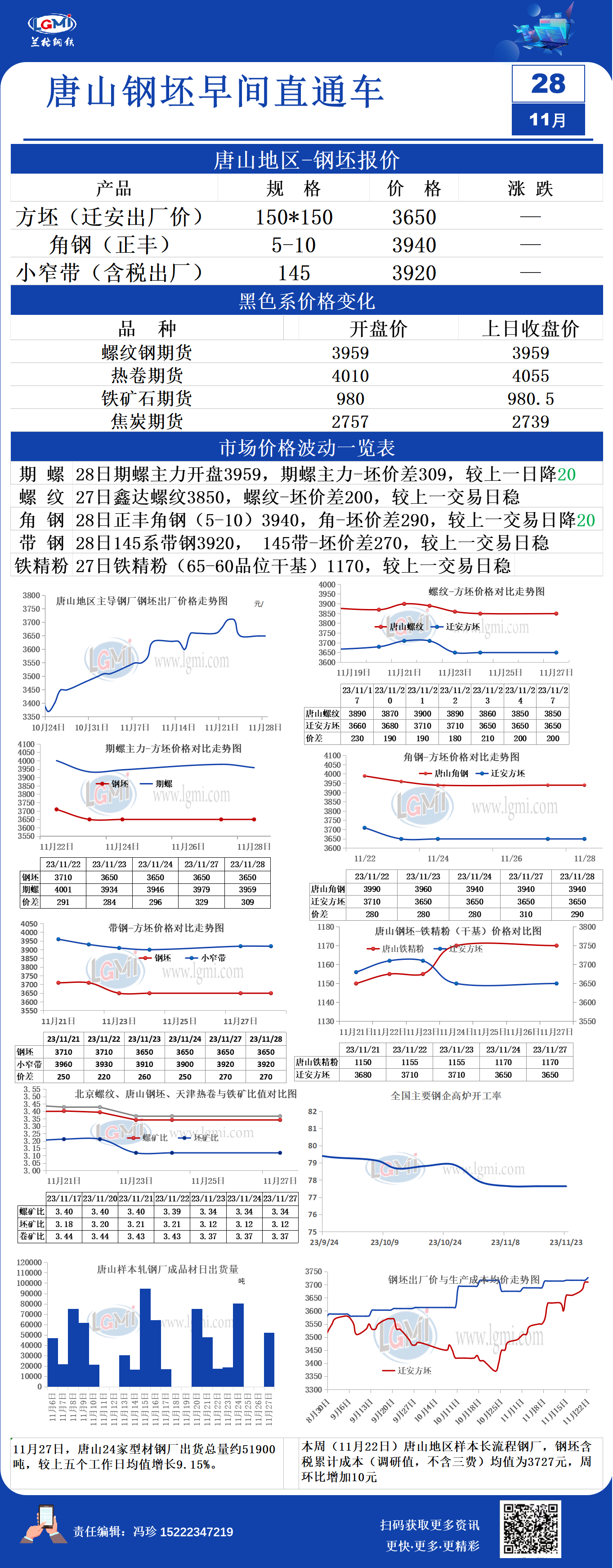 - 11月28日唐山钢坯早间直通车2023/11/28