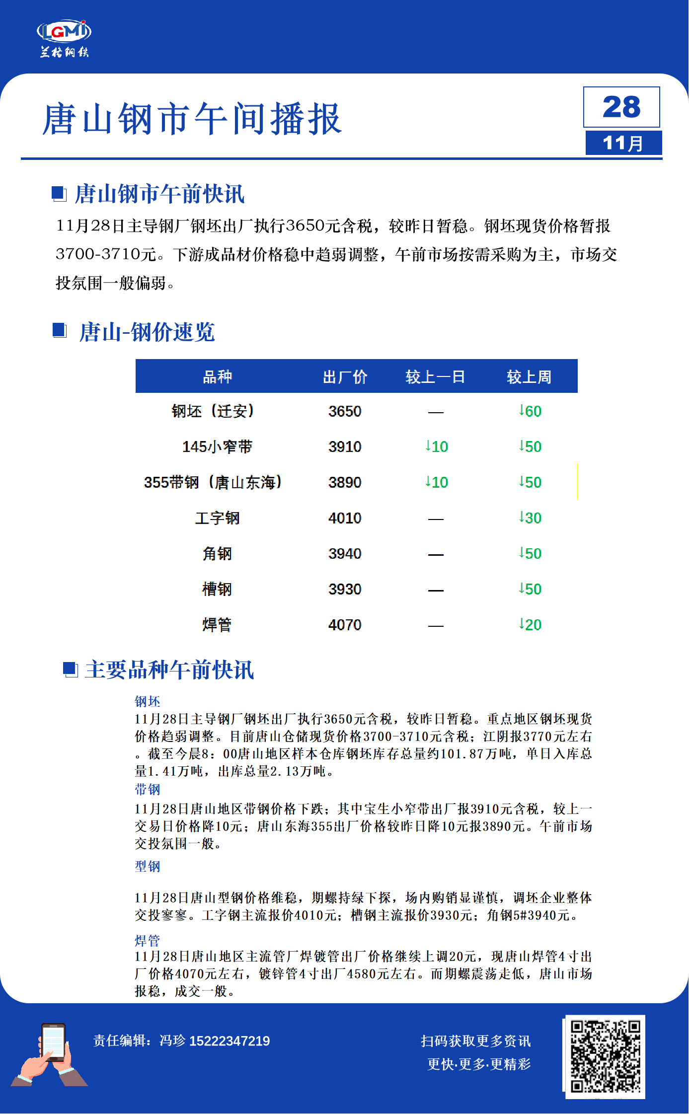 - 11月28日兰格唐山钢市午间播报2023/11/28