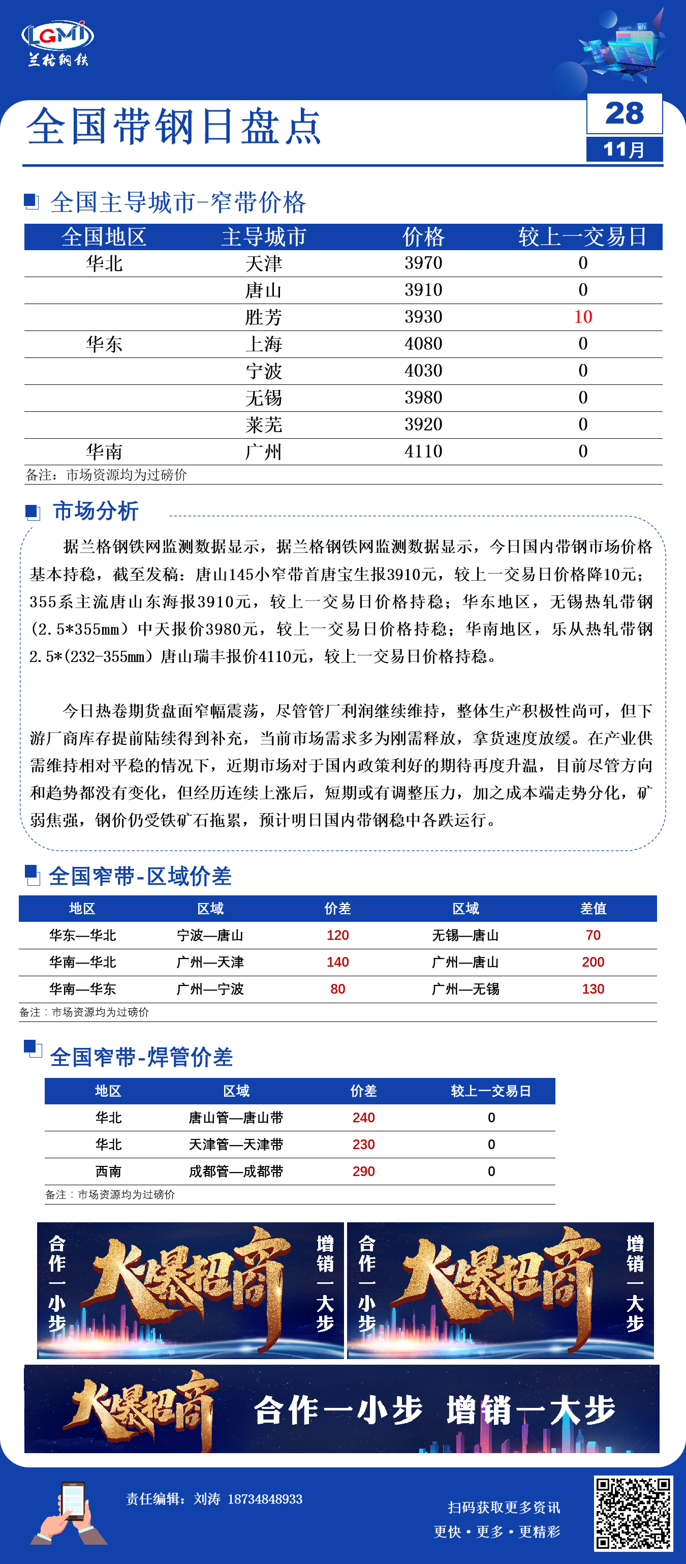 - 兰格带钢日盘点:生产积极性尚可 市场刚需释放2023/11/28