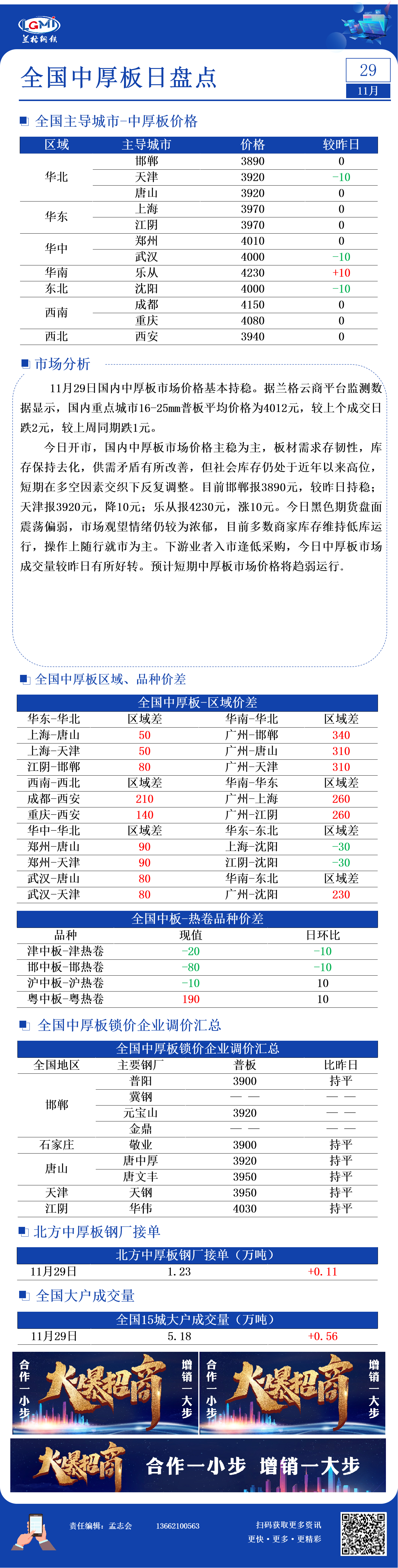 - 兰格中厚板日盘点:价格以稳为主 成交稍有改善2023/11/29