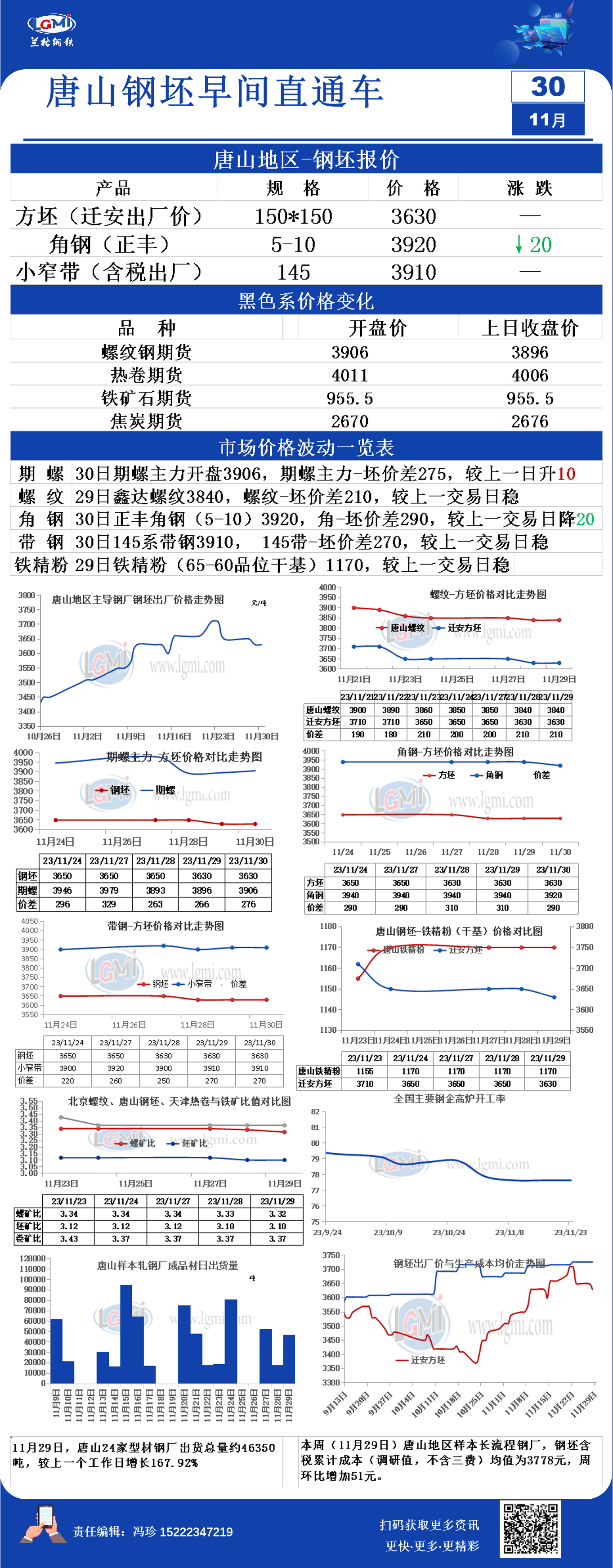 - 11月30日唐山钢坯早间直通车2023/11/30