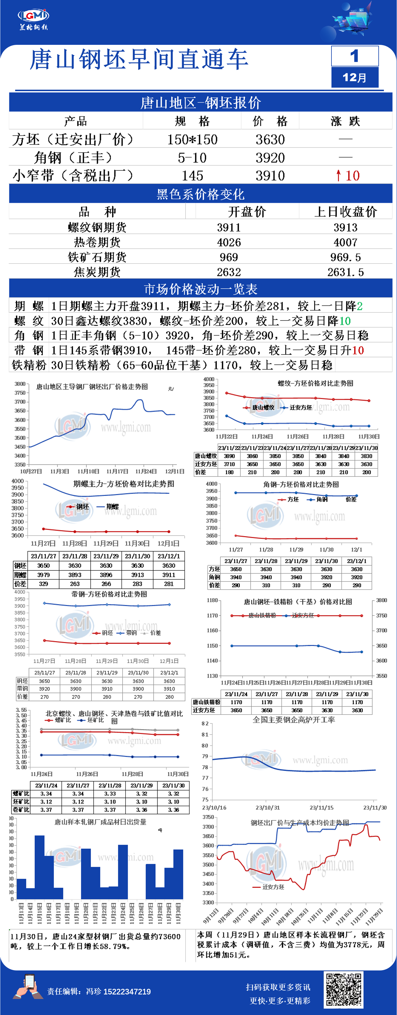 - 12月1日唐山钢坯早间直通车2023/12/1