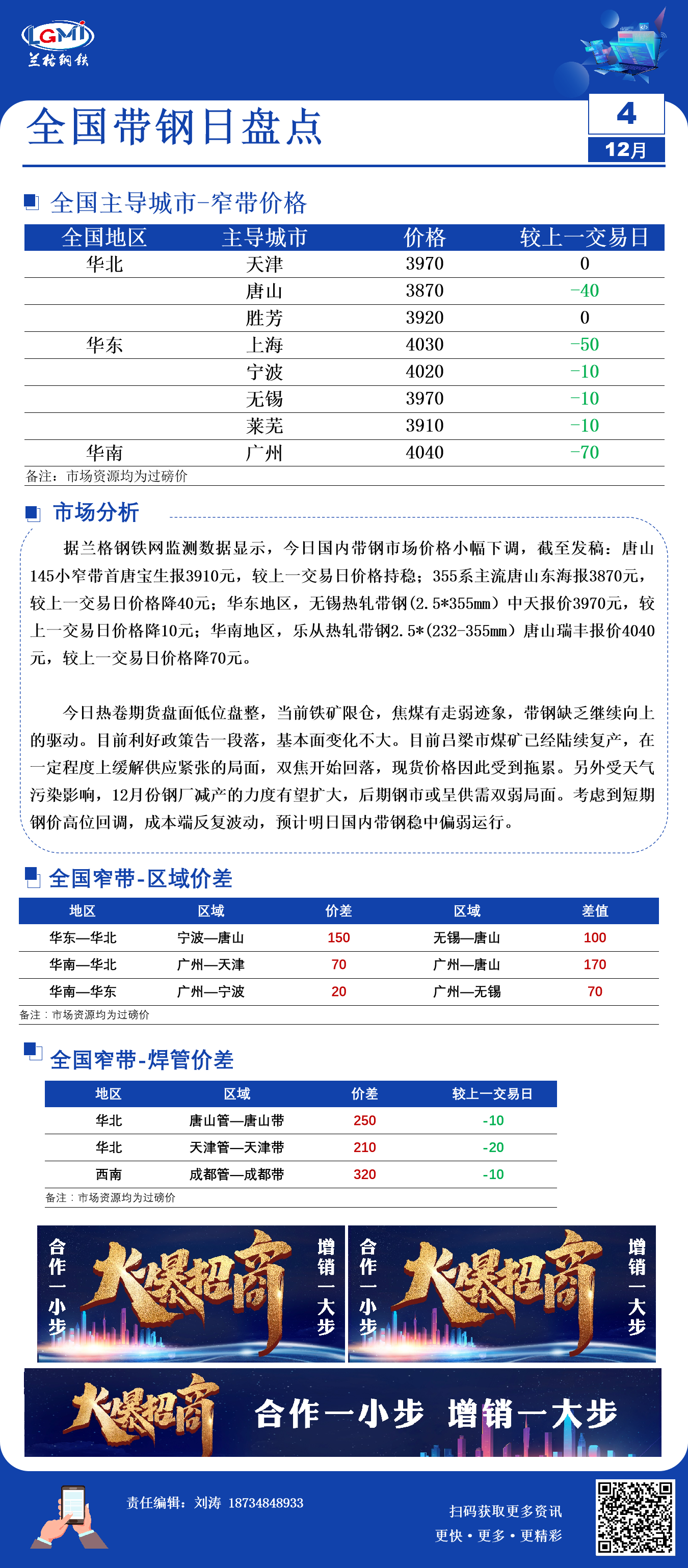 - 兰格带钢日盘点:现货价格走弱 煤矿陆续复产2023/12/4