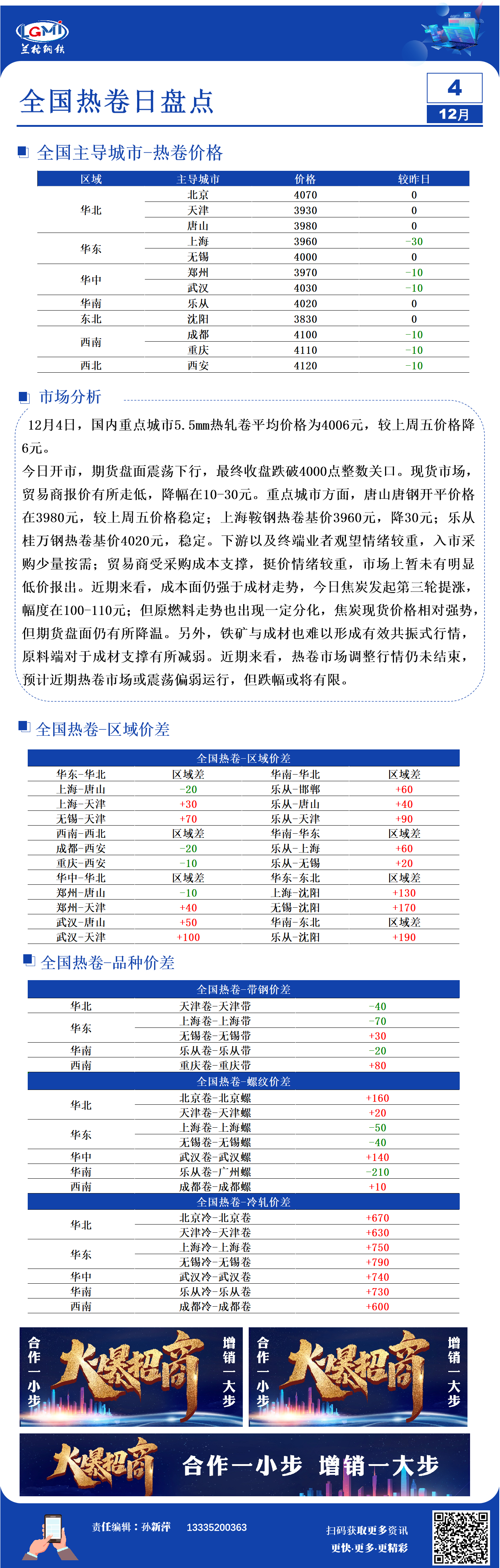- 12月4日成实建筑钢材出厂价格持稳2023/12/4