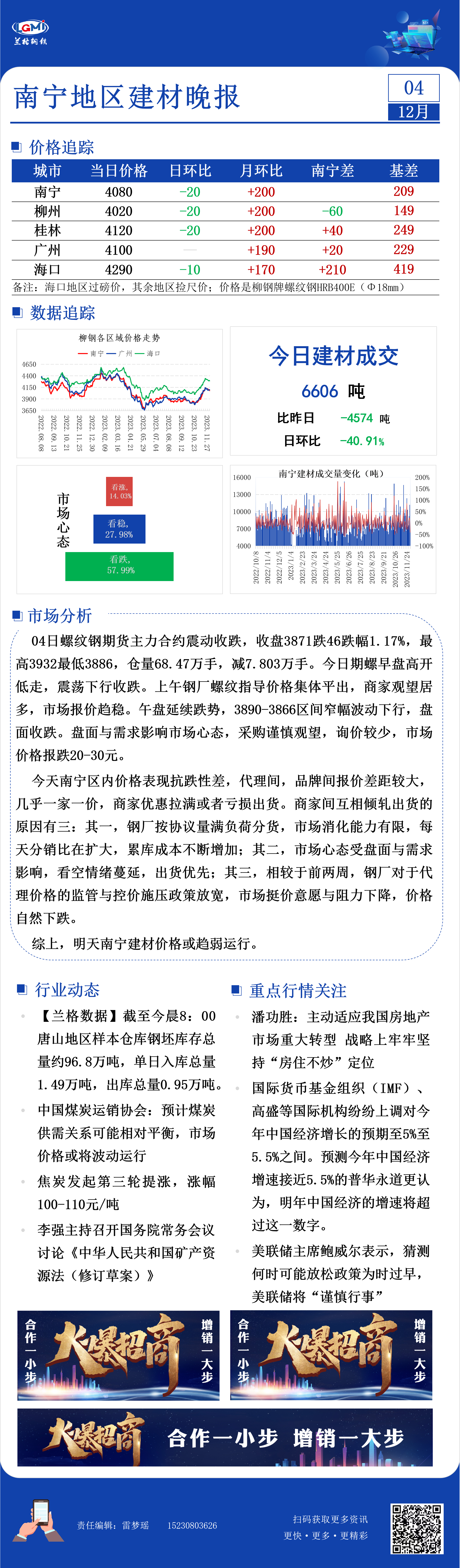 - 12月4日成实建筑钢材出厂价格持稳2023/12/4