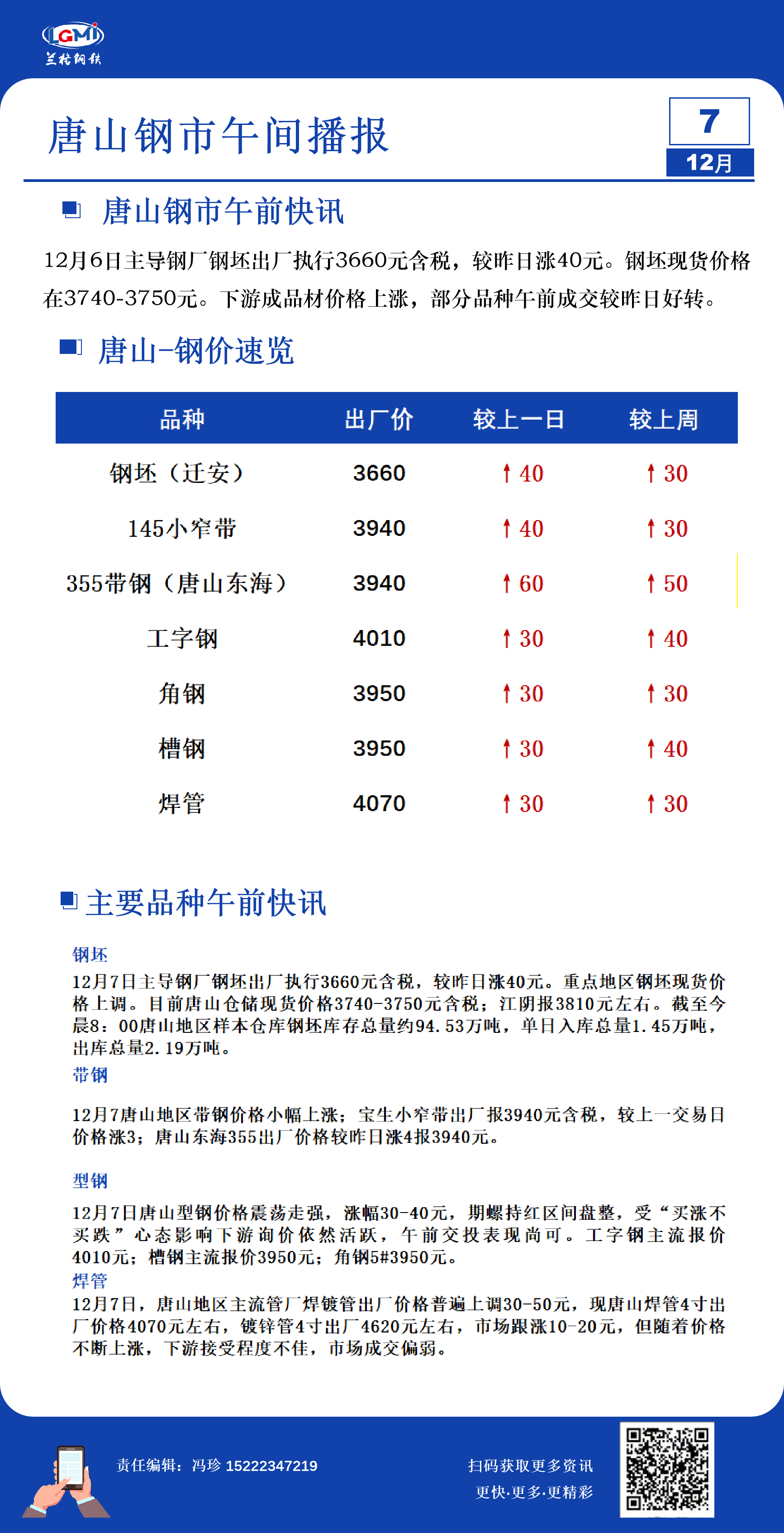 - 快讯:12月7日唐山津西钢铁带钢出厂价格涨502023/12/7