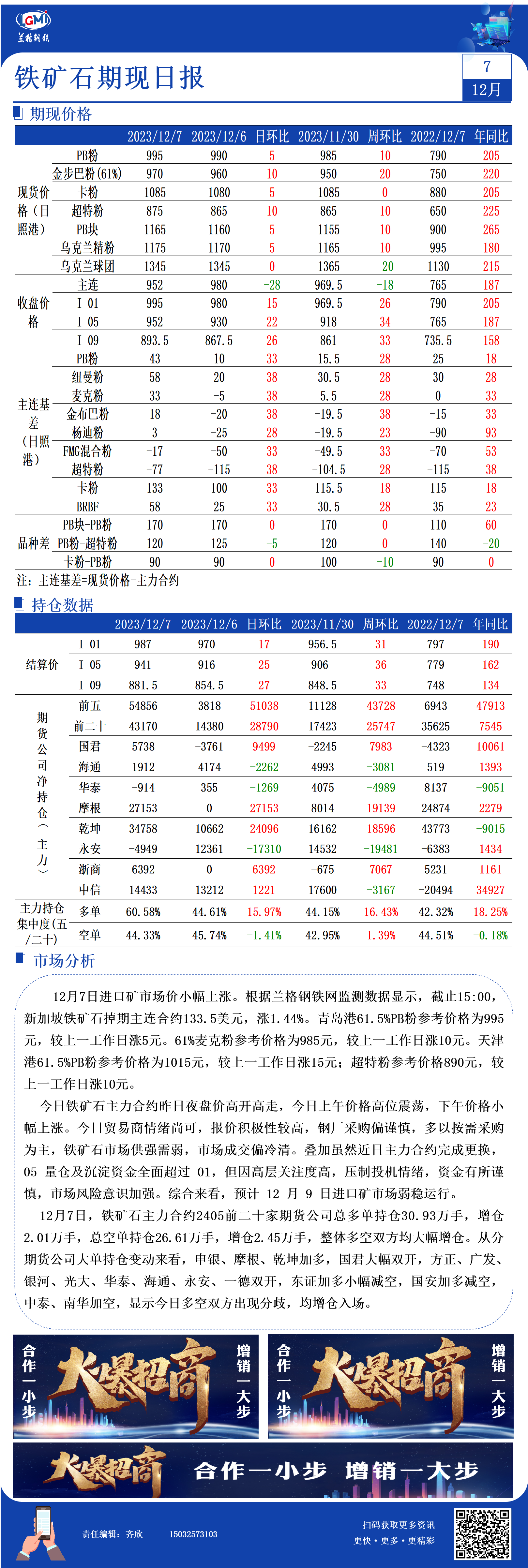 - 7日铁矿石期货收于952涨3.93%2023/12/7