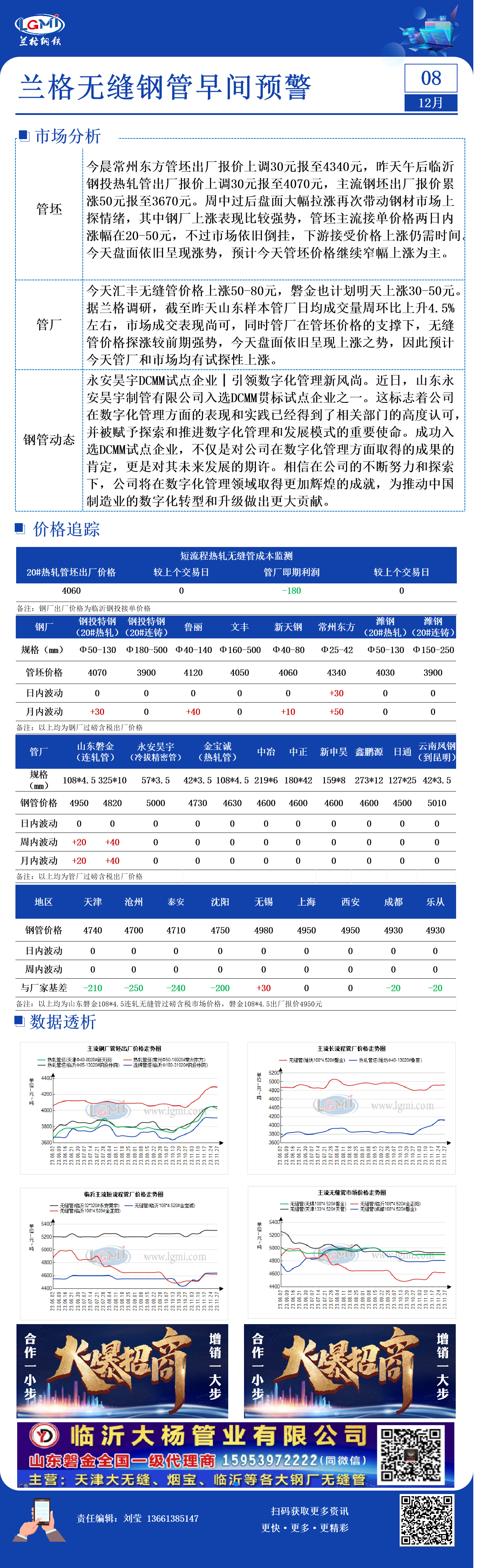 12月8日兰格无缝管早间预警
