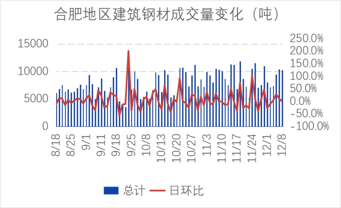 需求方面,本周合肥12家样本贸易商成交4.46万吨,环比上周减少0.05万吨,日均成交0.89万吨,环比上周减少0.01万吨,需求小幅缩量,整体尚可。市场心态谨慎,高位拿货积极性不高,商家多维持低库存运行。