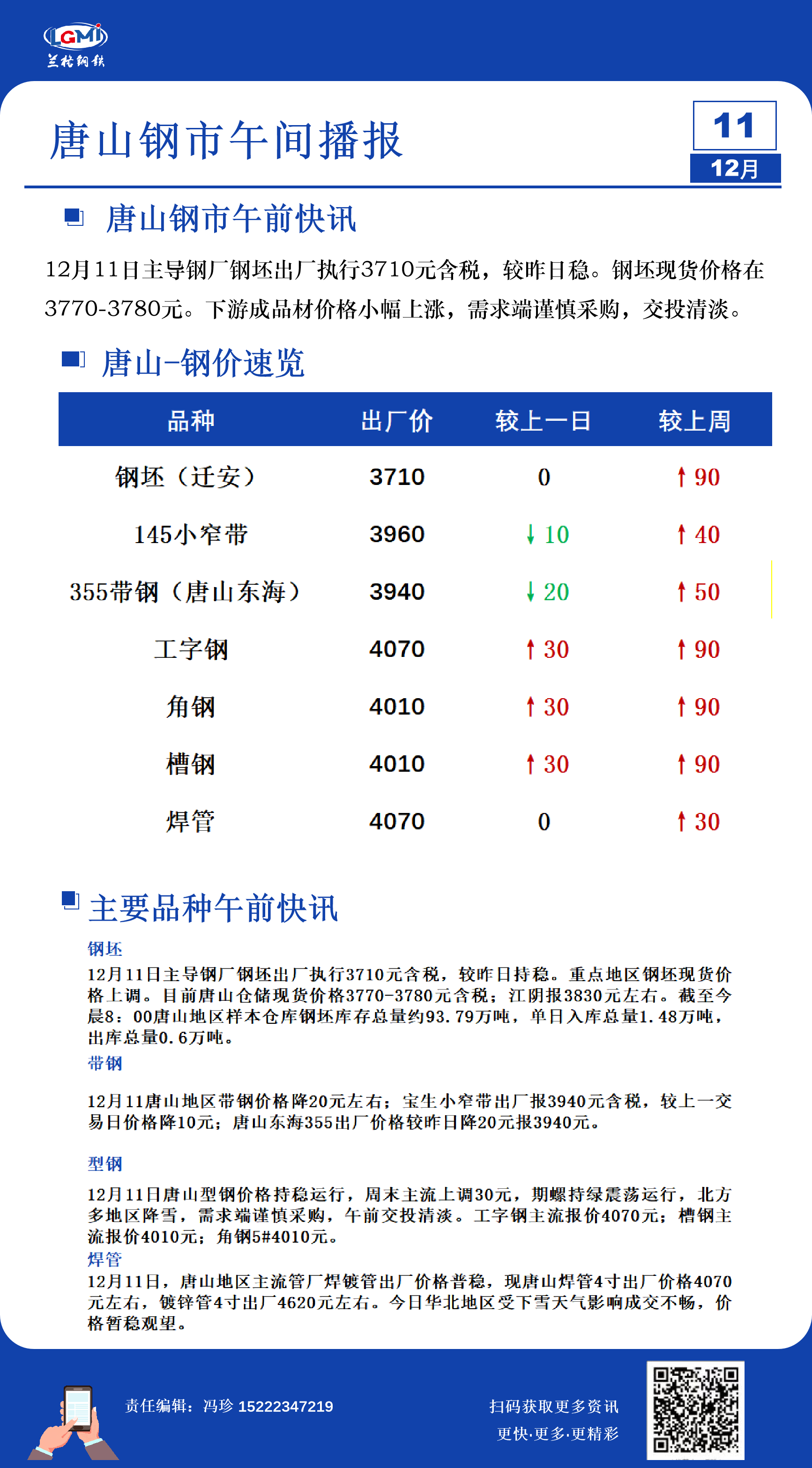 - 12月11日兰格唐山钢市午间播报2023/12/11