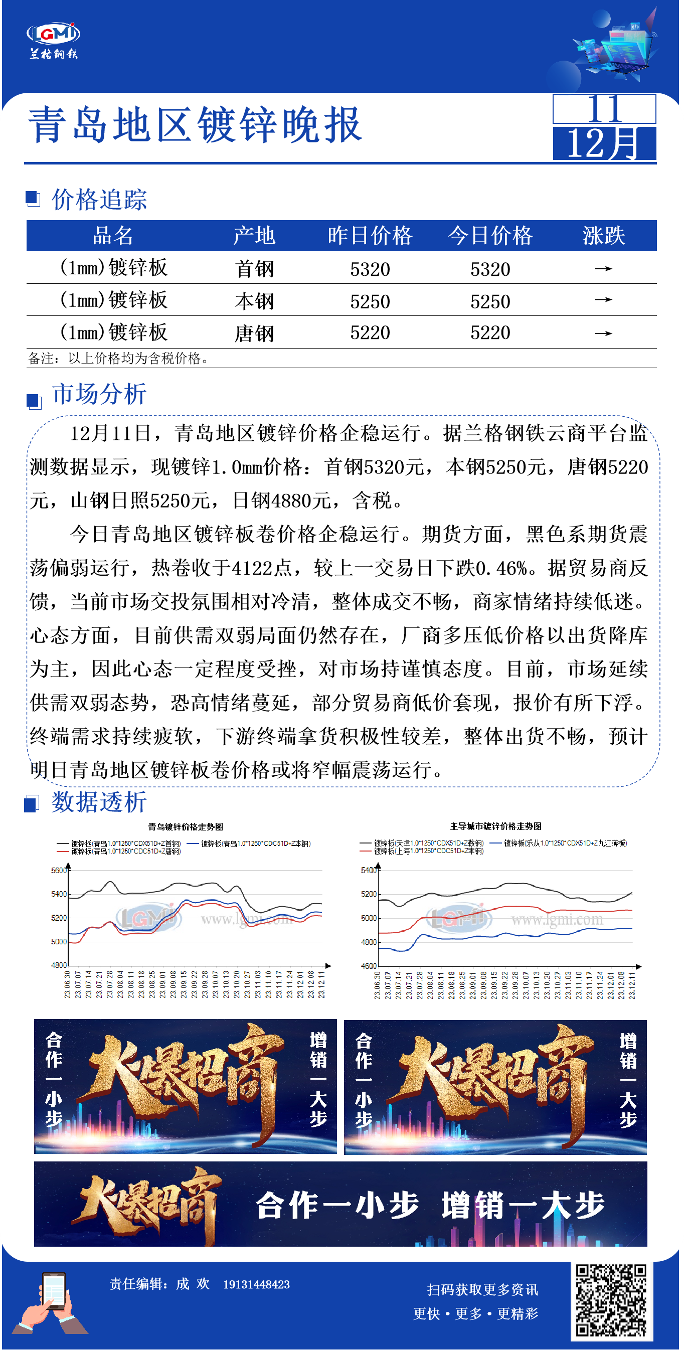 青岛镀锌价格企稳运行 供需维持弱平衡