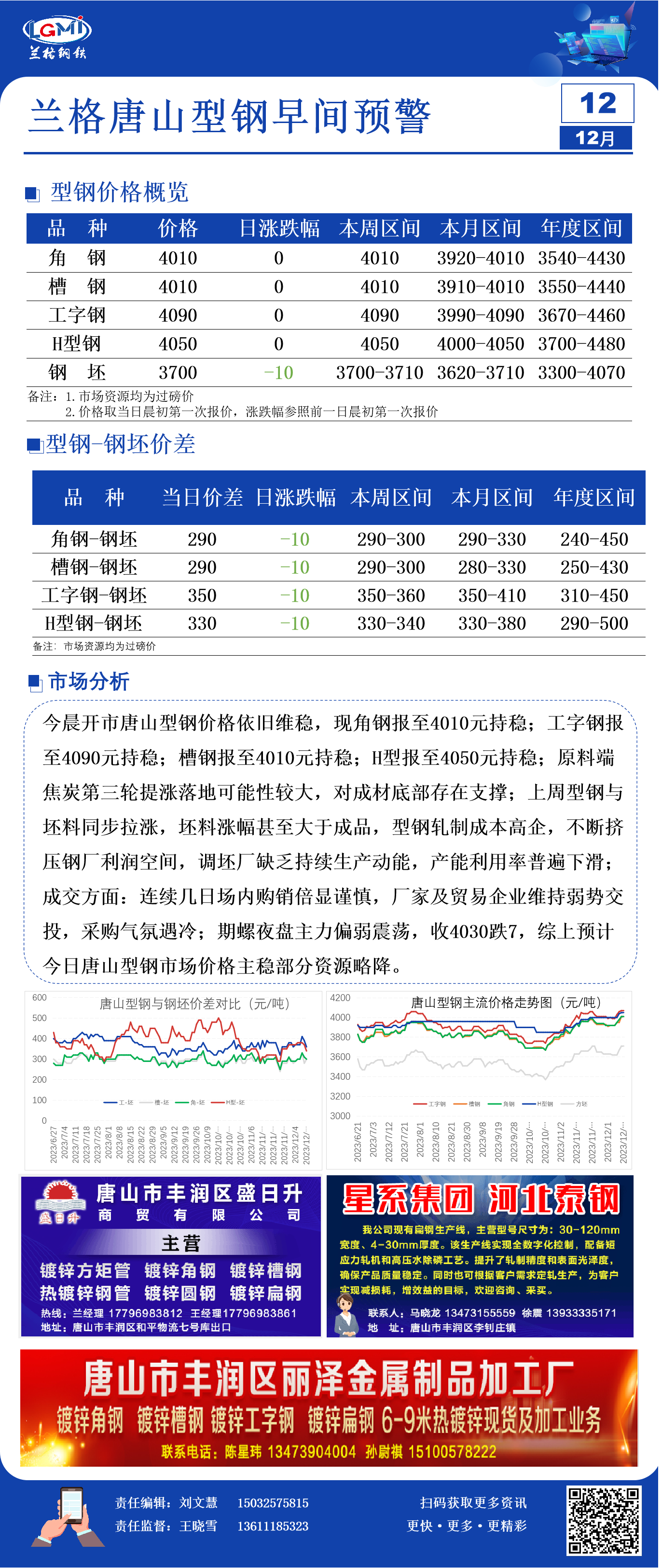 12月12日兰格唐山型钢早间预警