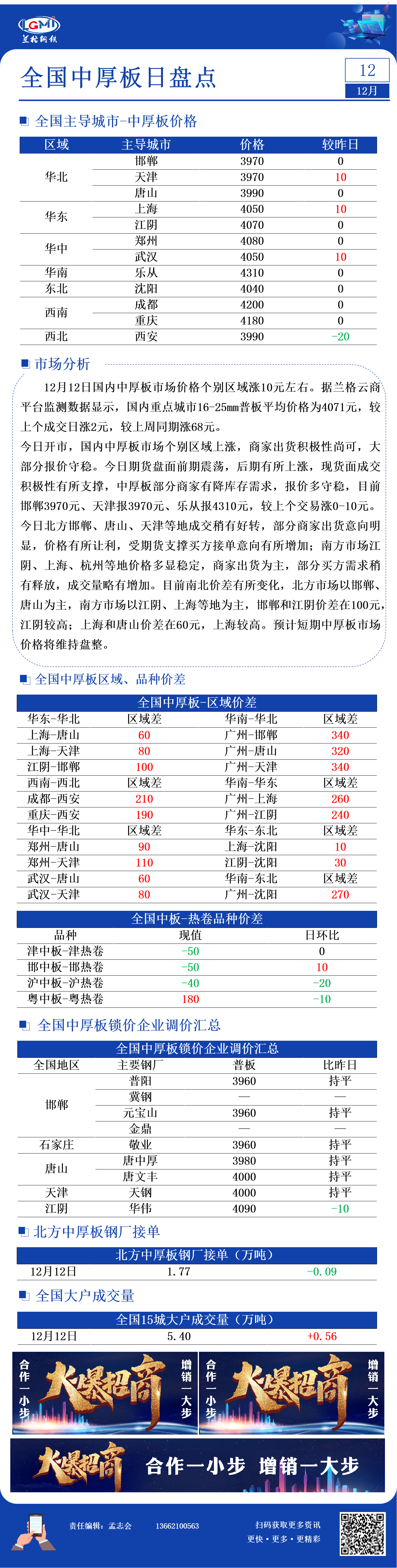 - 兰格中厚板日盘点:市场价格个别上涨 需求少量释放2023/12/12