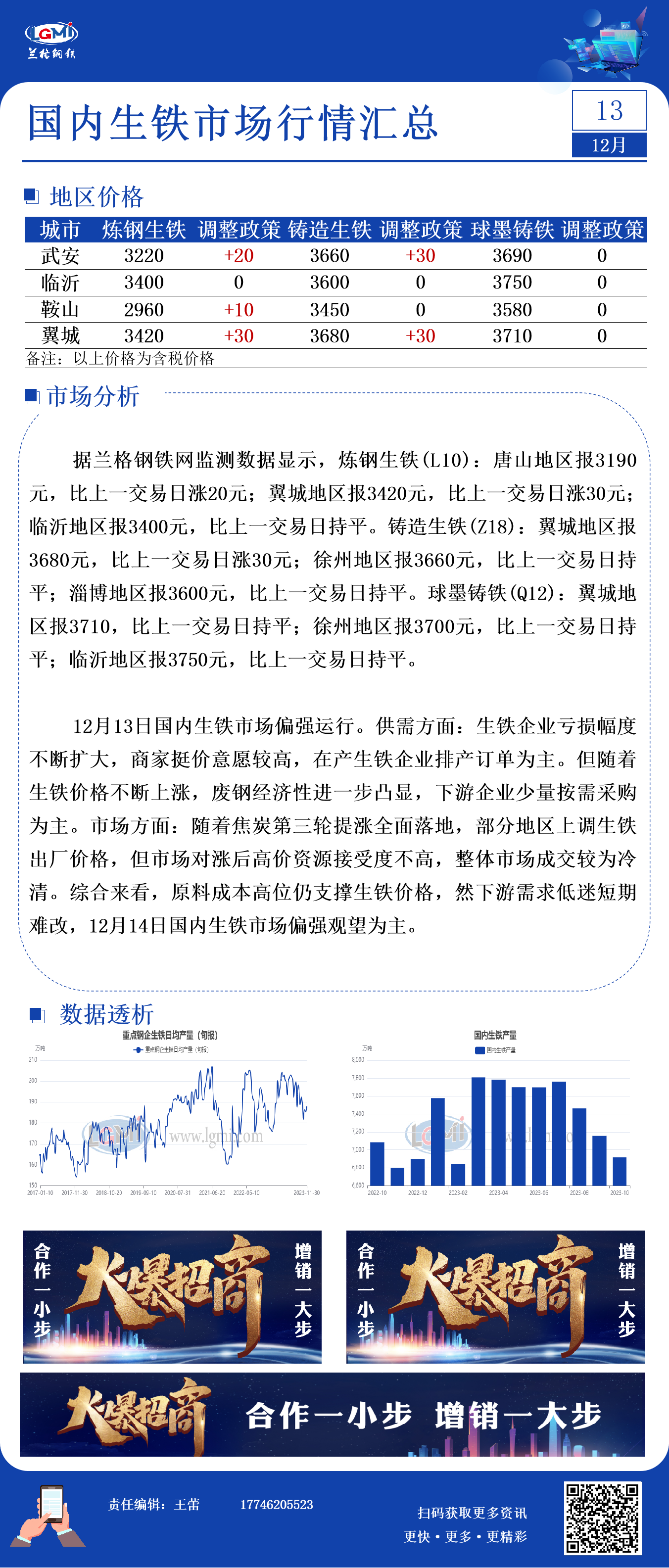 - 12月13日国内生铁市场行情汇总2023/12/13