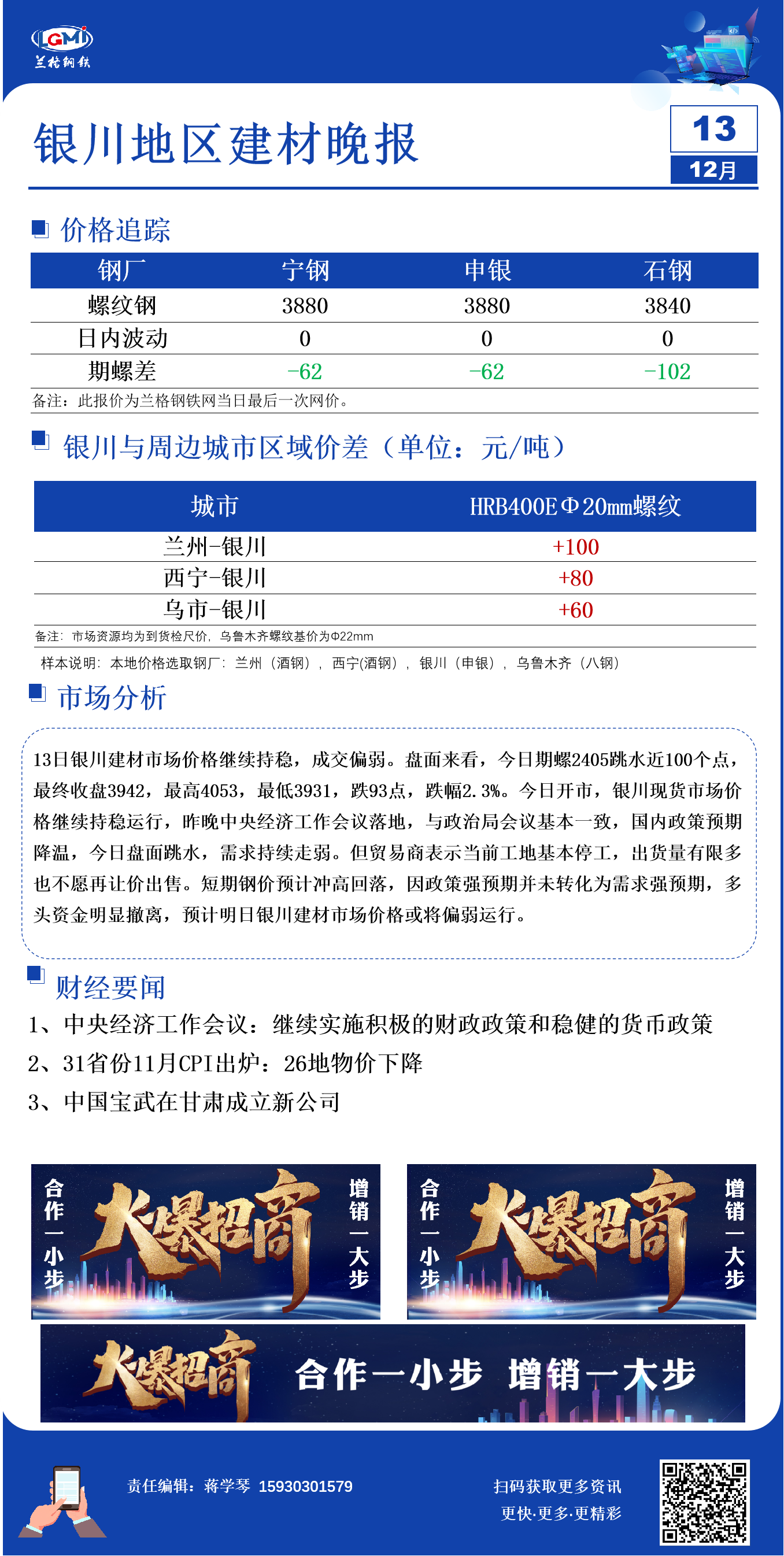 - 12月13日贵阳长乐钢铁建筑钢材出厂价格平稳2023/12/13
