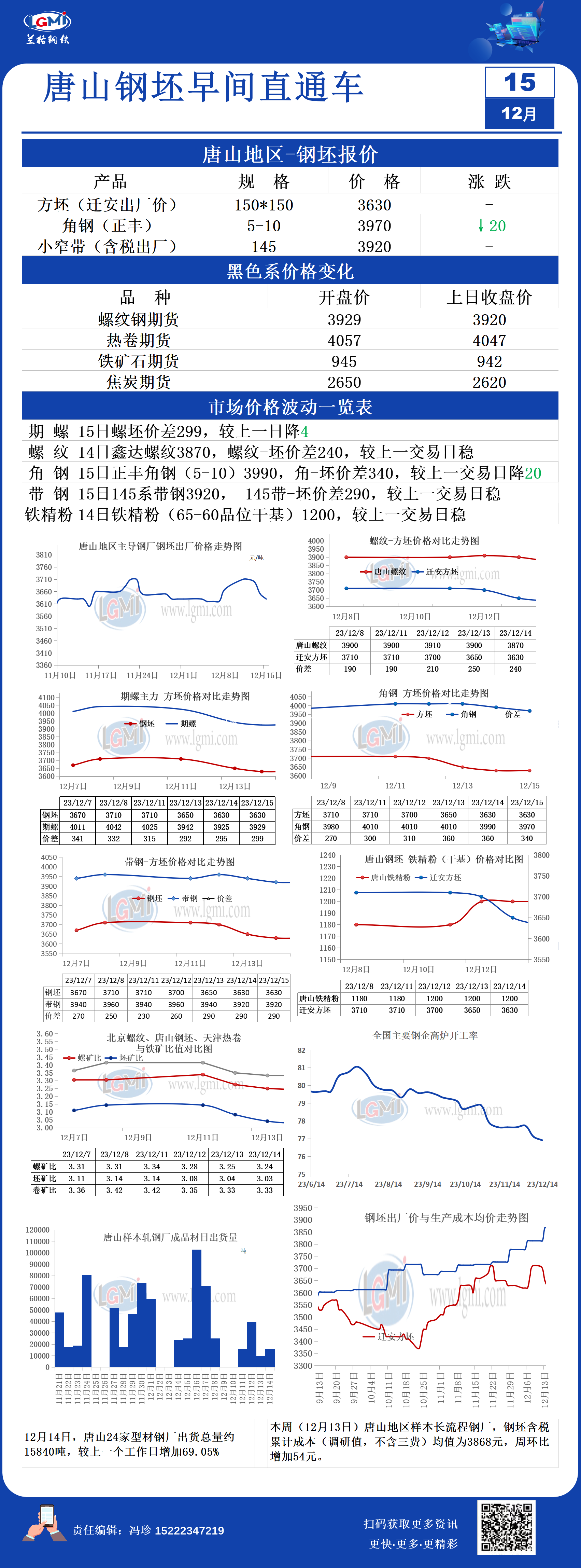 - 12月15日唐山钢坯早间直通车2023/12/15