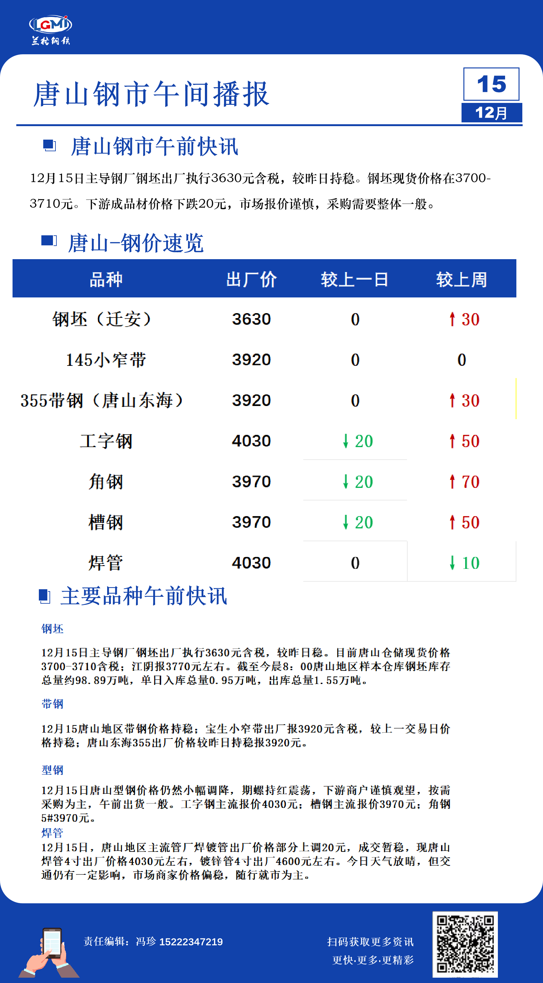 - 12月15日兰格唐山钢市午间播报2023/12/15