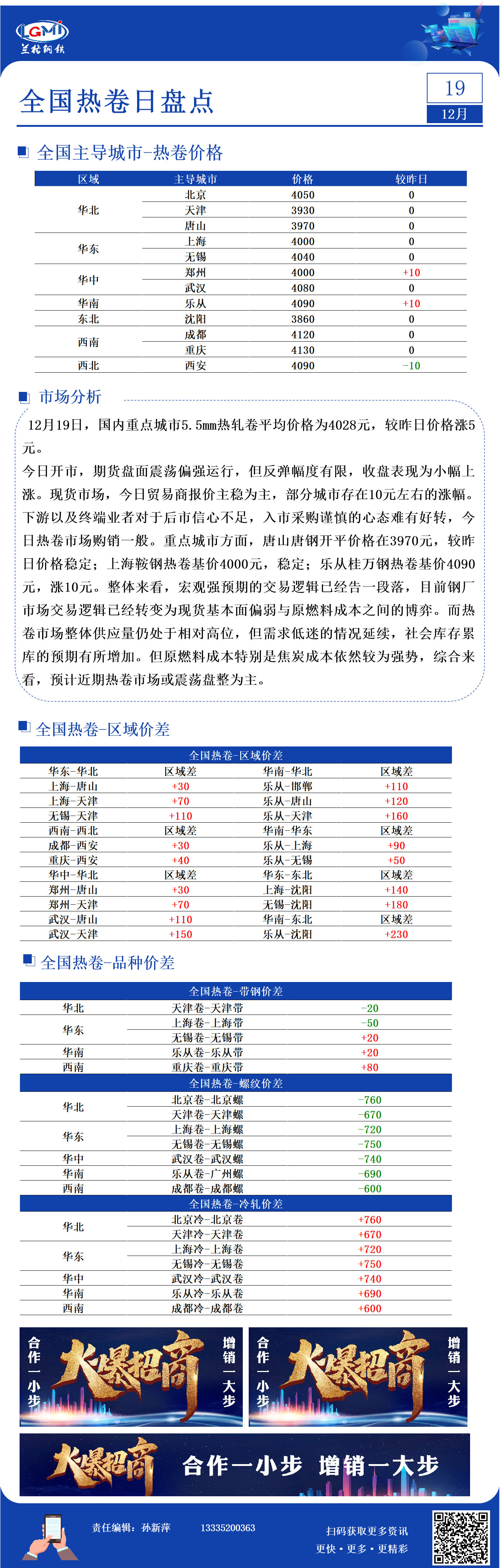 - 12月19日美锦建筑钢材出厂价格平稳2023/12/19